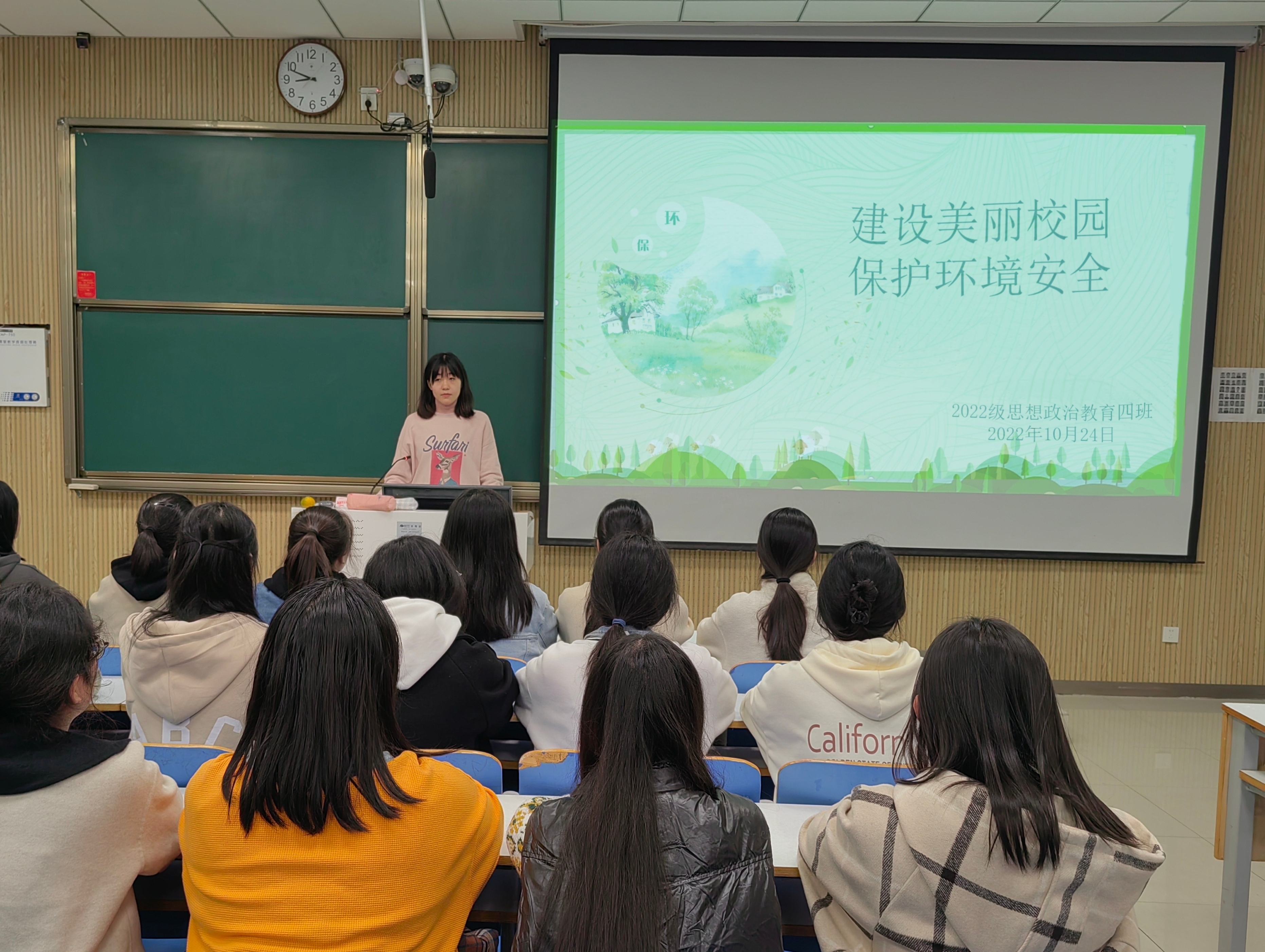 为贯彻绿色发展理念,提高同学们的环保意识,10月24日下午,2026年世界杯官网2022级思想政治教育四班在社科楼515教室召开“建设美丽校园,保护环境安全”主题班会。会议由文体委员周可盈主持。