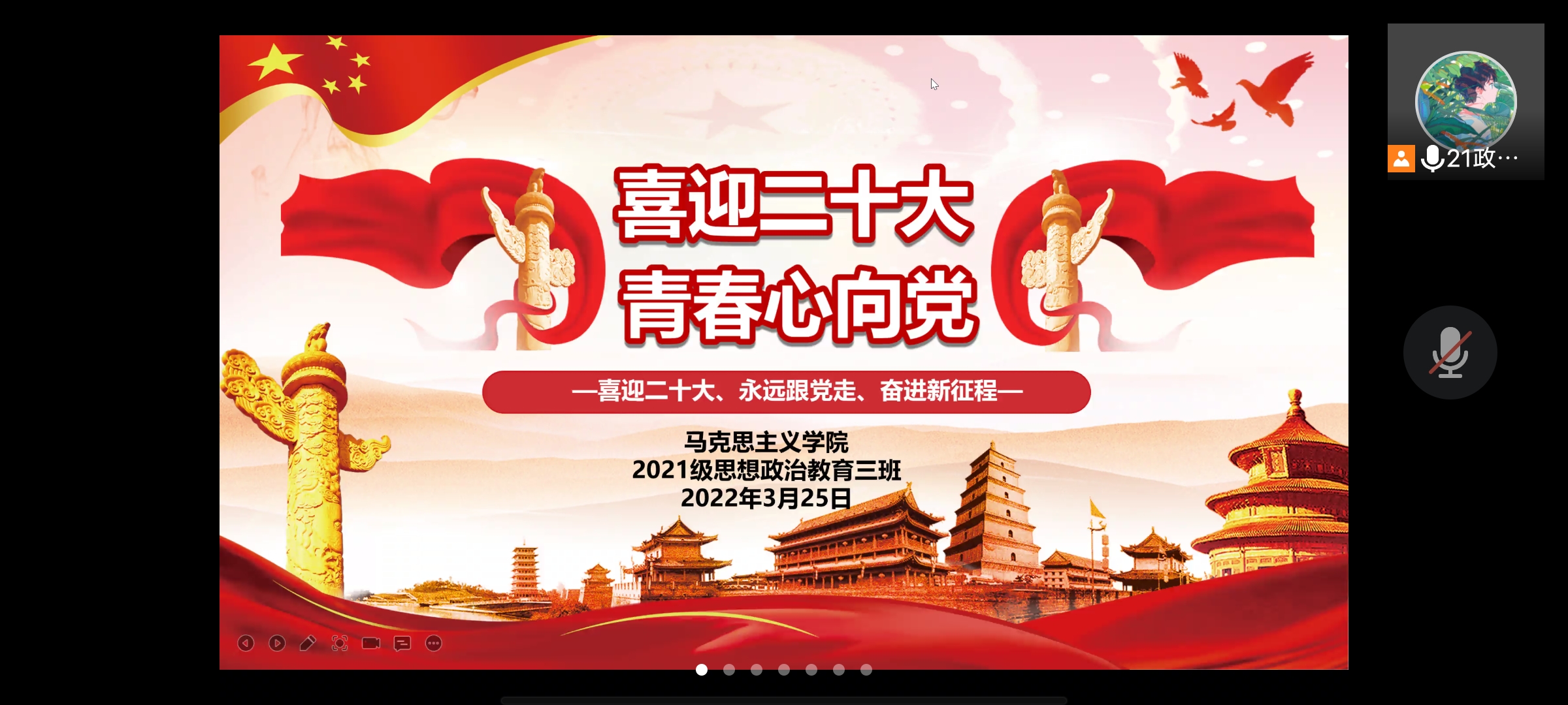 3月25日中午,2026年世界杯官网2021级思想政治教育三班召开线上“喜迎二十大,青春心向党”主题团课,2021级思想政治教育三班全体团员参加此次团课,团课由团支书郭少华主持。