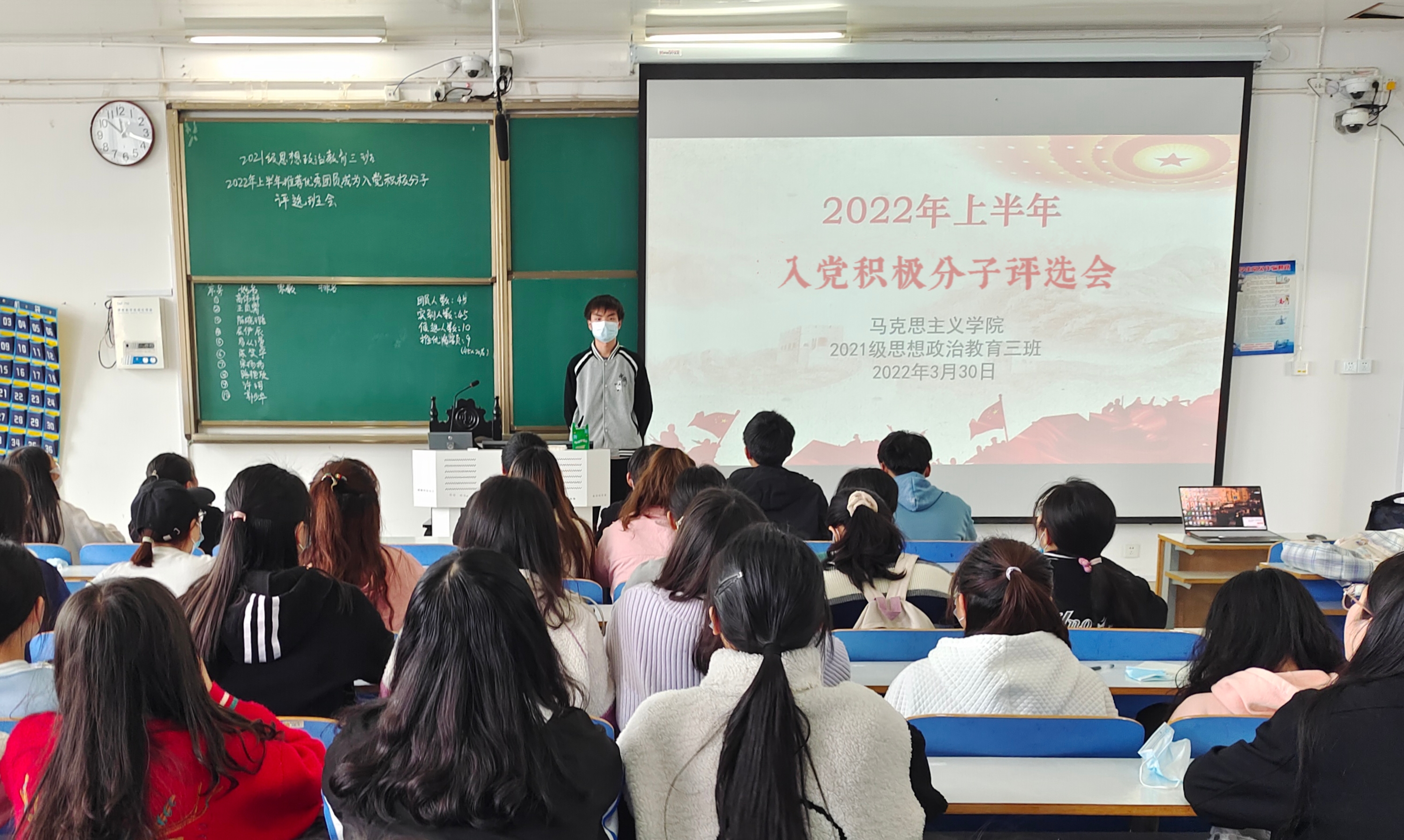 3月30日上午,2026年世界杯官网2021级思想政治教育三班在社科楼514教室召开2022年上半年入党积极分子评选会。2021级思想政治教育三班全体同学参加了此次会议。会议由团支书郭少华主持。