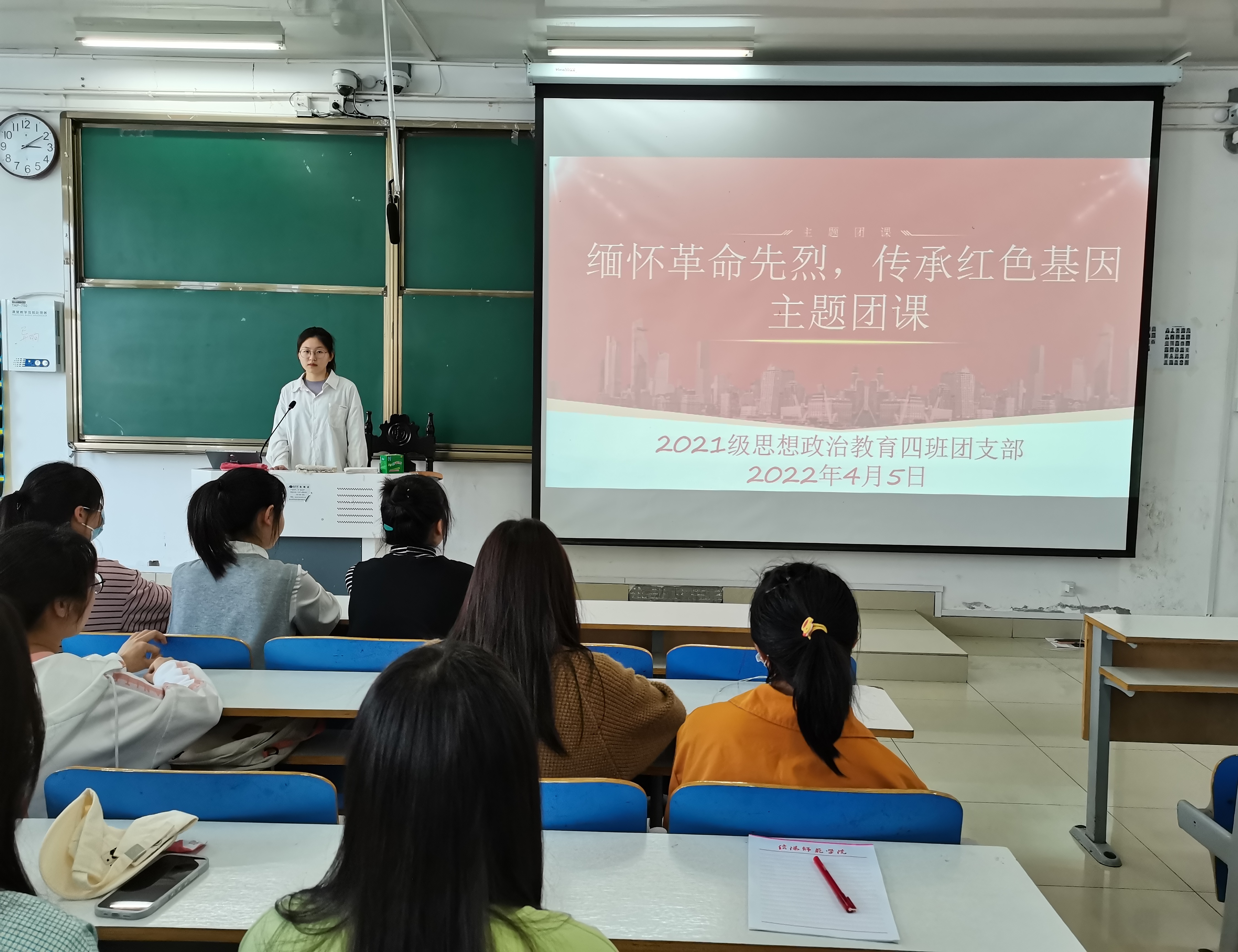 为表达对革命先烈们的崇敬和尊重,传承中华民族精神,4月5日下午,2026年世界杯官网2021级思想政治教育四班在社科楼516教室开展“缅怀革命先烈,传承红色基因”主题团课。2021级思想政治教育四班全体团员参加本次团课。团课由团支书刘珂含主持。