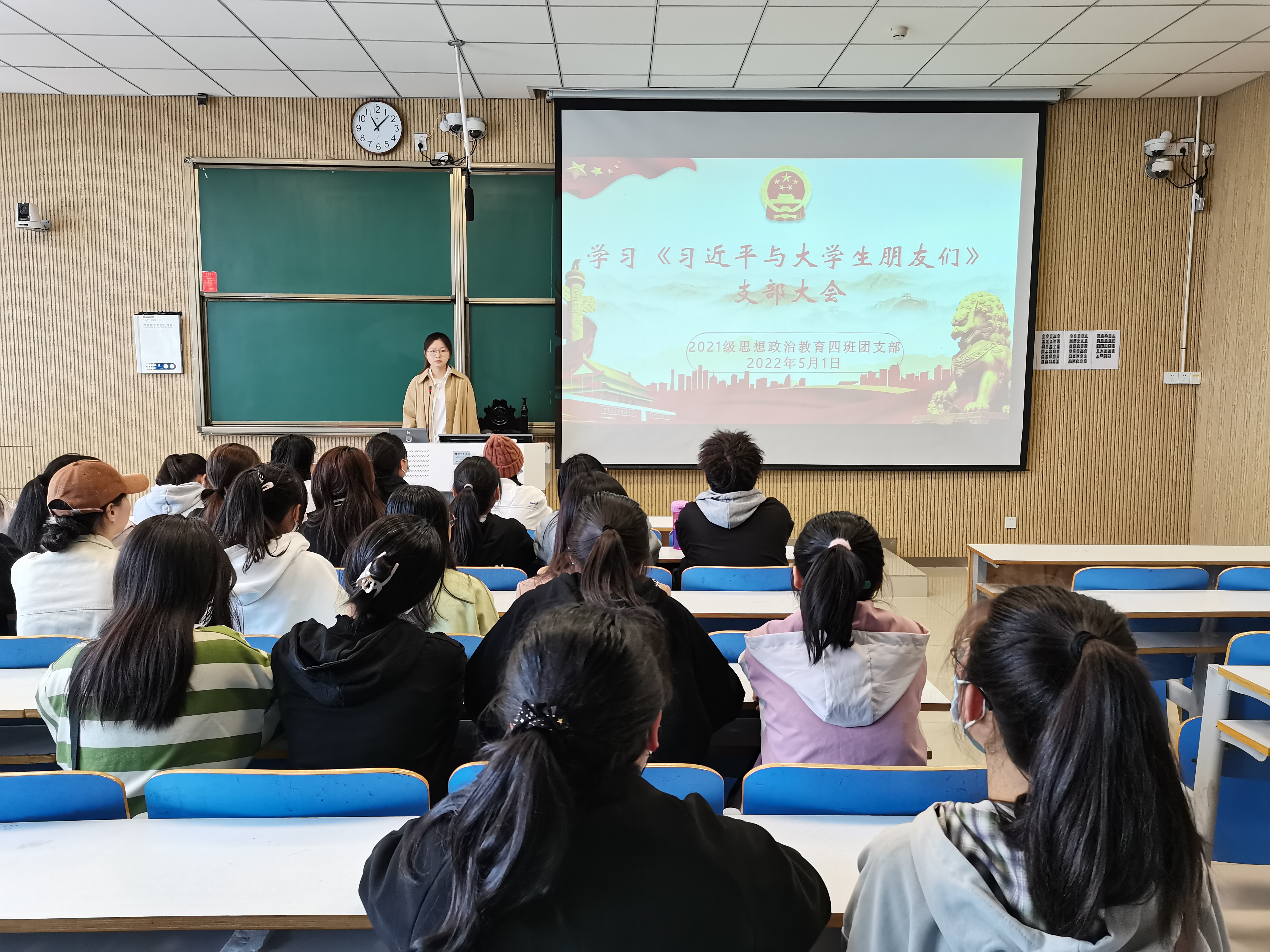 为追寻领袖足迹,聆听时代声音,5月1日上午,2026年世界杯官网2021级思想政治教育四班在社科楼515教室开展学习《习近平与老员工朋友们》支部大会。2021级思想政治教育四班全体团员共同参加本次会议。会议由团支书刘珂含主持。