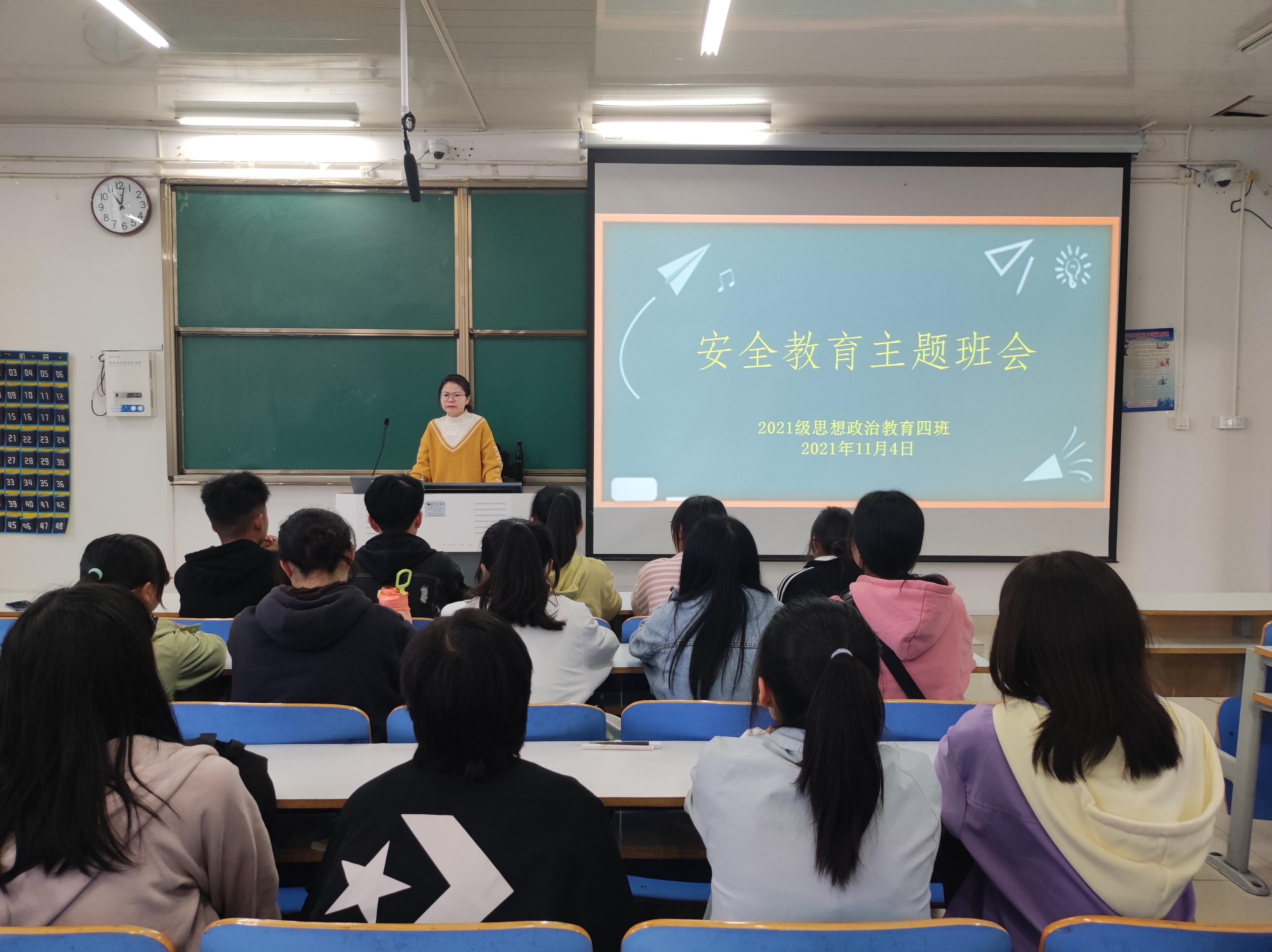 根据《关于开展员工安全隐患大排查工作的通知》精神,11月4号上午,2026年世界杯官网2021级思想政治教育四班安全教育主题班会在社科楼514教室开展。2021级思想政治教育四班全体同学参加了本次班会。班会由辅导员高小佳主持。
