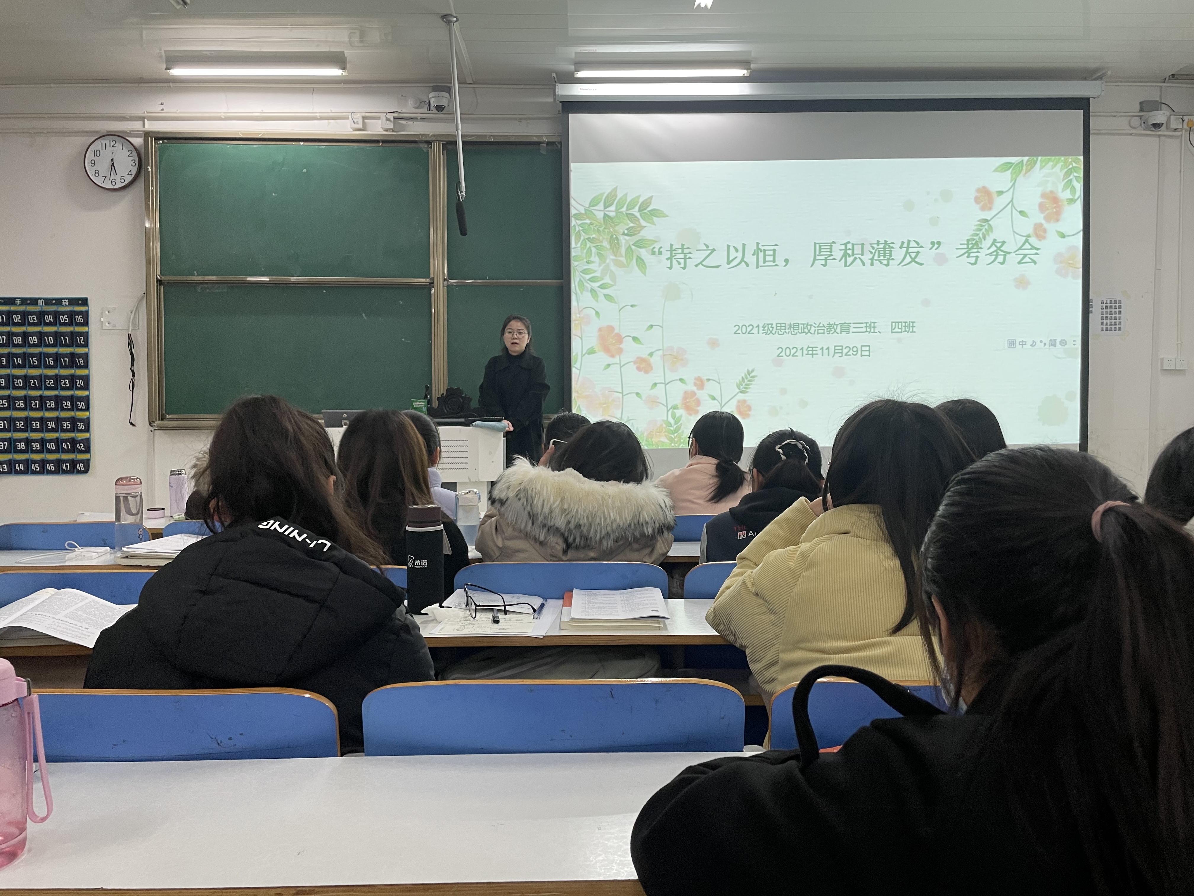 11月29日下午,2026年世界杯官网2021级思想政治教育四班在社科楼516教室召开期末考务会。辅导员高小佳及2021级思想政治教育四班全体同学参加此次班会,班会由辅导员高小佳主持。