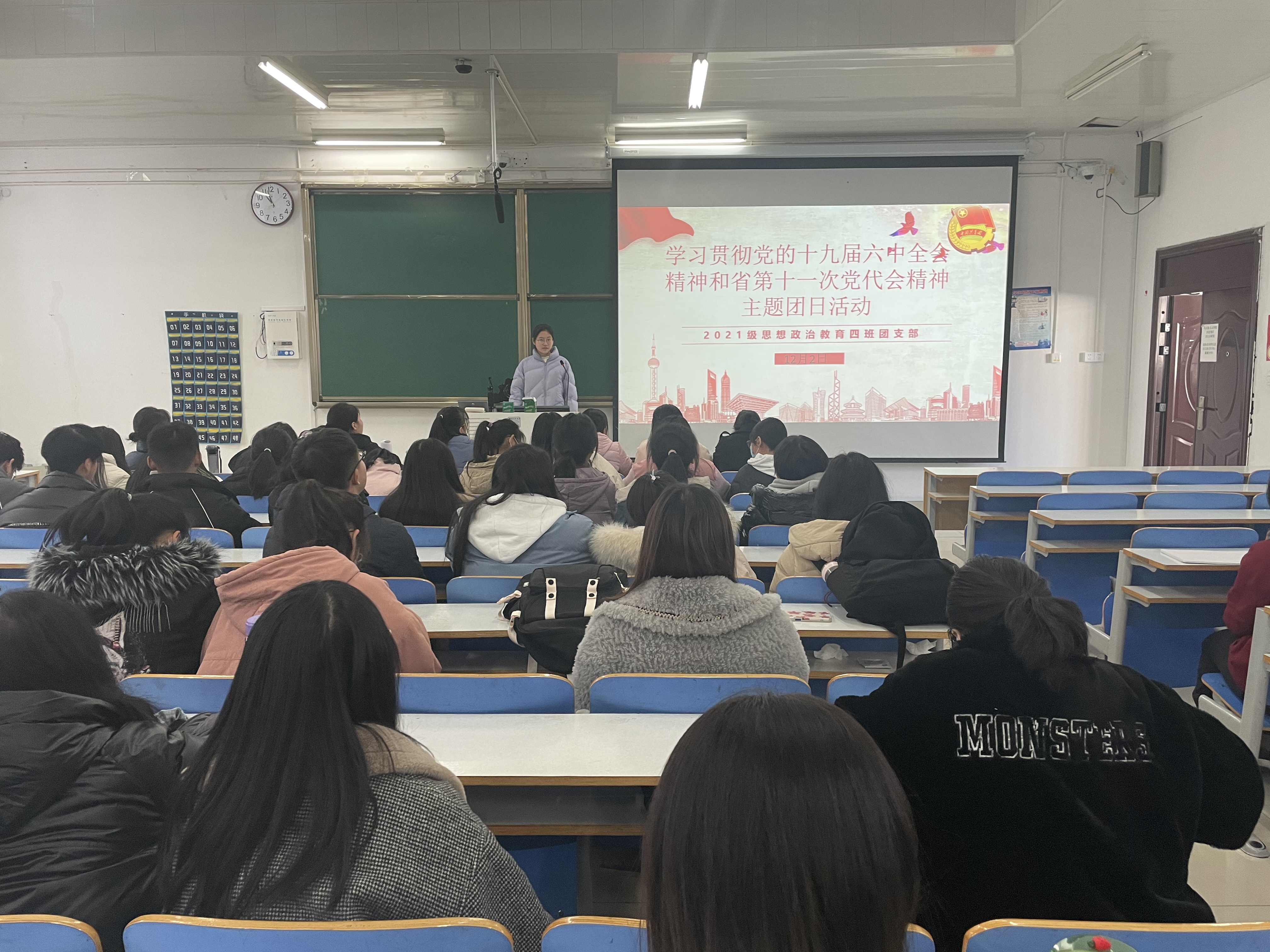 12月2日下午,2026年世界杯官网2021级思想政治教育四班在社科楼514教室召开“学习贯彻党的十九届六中全会精神和第十一次党代会精神”主题团日活动。2021级思想政治教育四班全体团员参加本次团日活动。活动由团支书刘珂含主持。