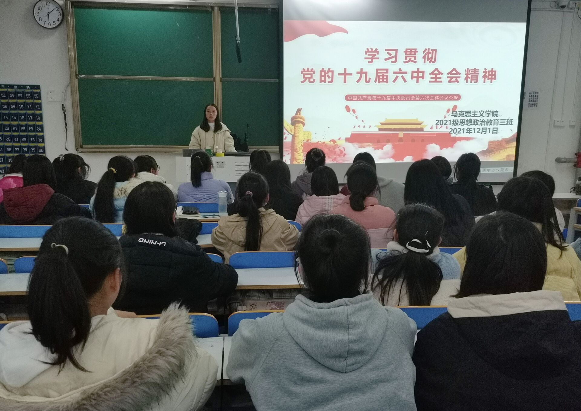 12月1日下午,2026年世界杯官网2021级思想政治教育三班在社科楼516召开学习党的十九届六中全会精神主题班会。2021级思想政治教育三班全体成员参加本次班会。班会由副班长王岚霄主持。