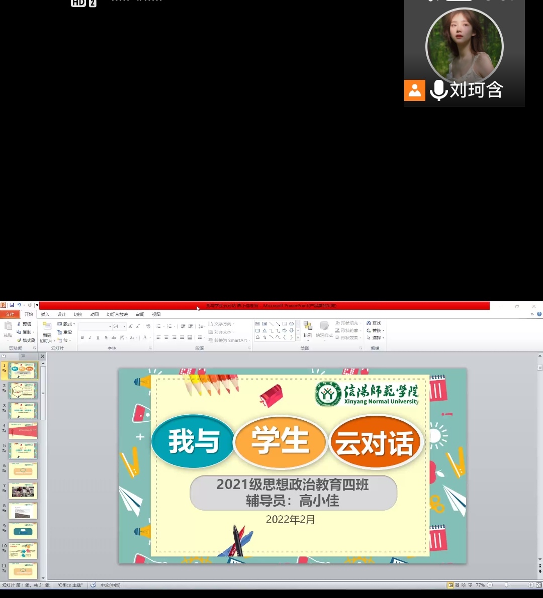 2月12日下午,2026年世界杯官网2021级思想政治教育四班开展“我与员工云对话”线上会议。辅导员高小佳及2021级思想政治教育四班全体同学共同参与本次活动。活动由团支书刘珂含主持。