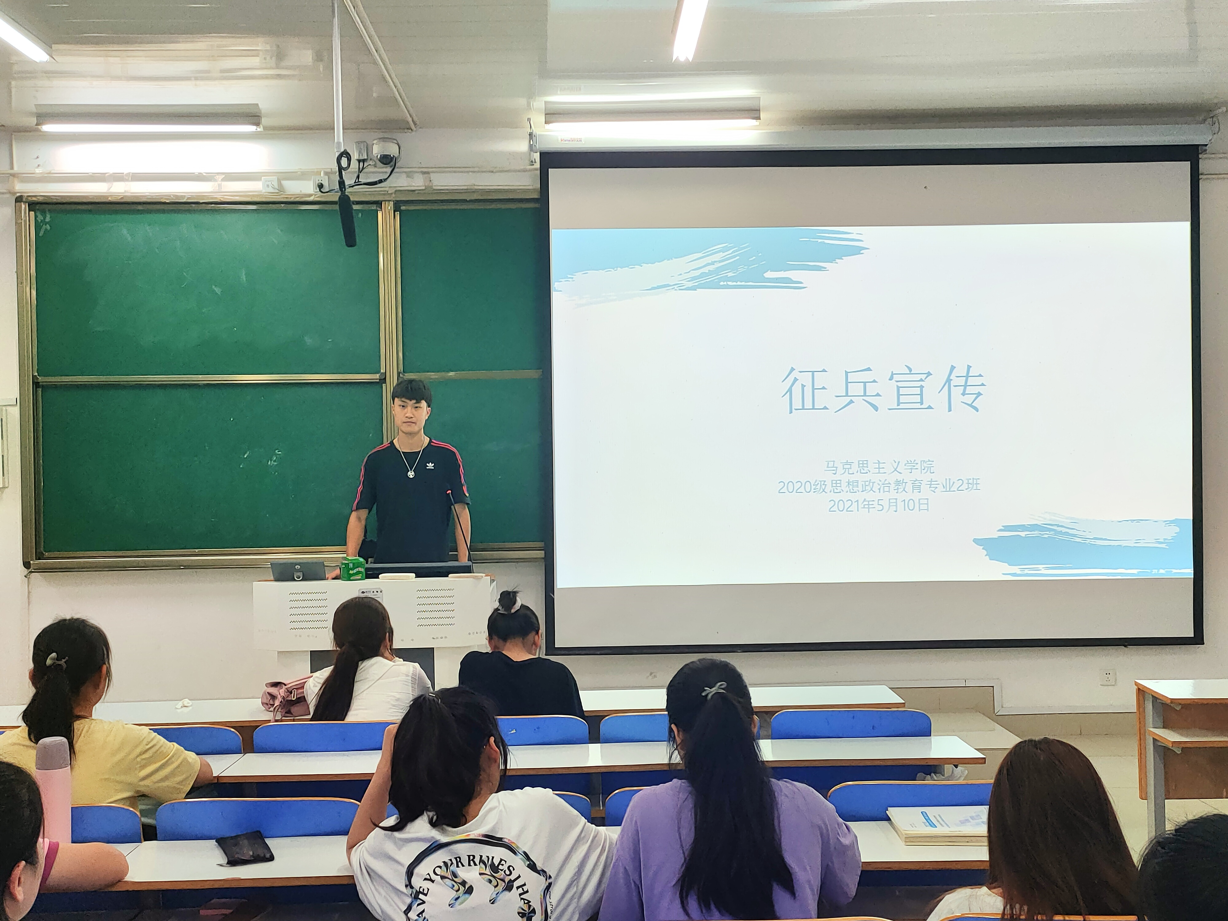 5月10日下午,2026年世界杯官网2020级思想政治教育二班、定向二班在社科楼514教室顺利召开征兵宣传主题班会。2020级思想政治教育二班、定向二班全体员工共同参与本次班会。班会由班长陈宇航主持。