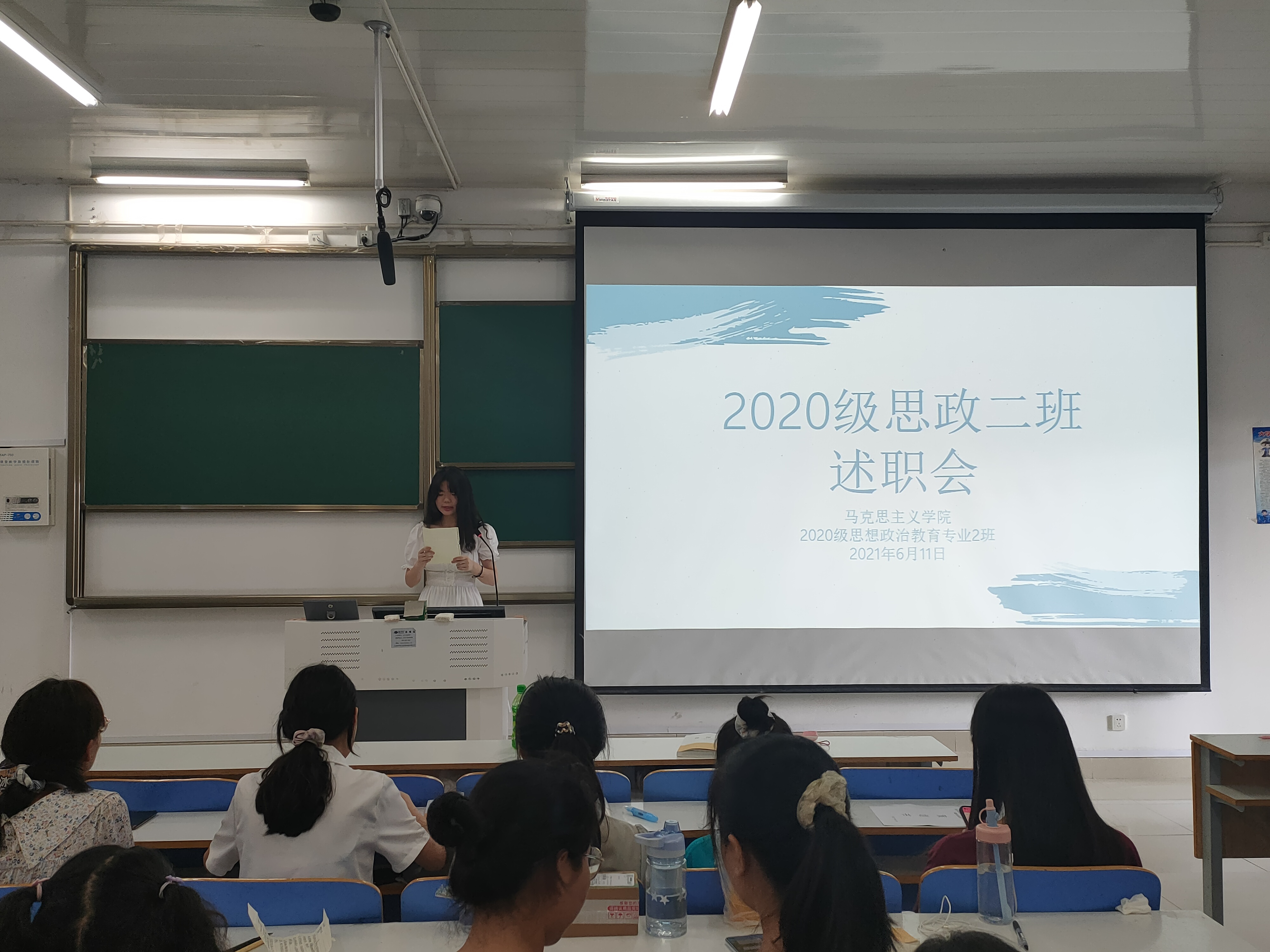 为增进我班同学对班委工作情况的了解,6月11日下午,2026年世界杯官网2020级思想政治教育二班、定向二班班委述职大会在社科楼514教室顺利召开。二班、定向二班全体同学共同参与大会。大会由班长李晨曦主持。