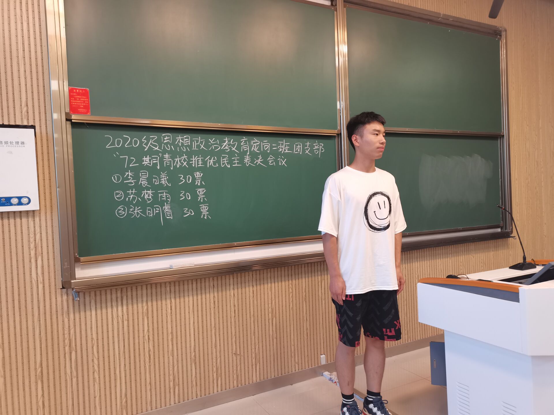 此次表决大会秉承公平公正公开的原则,邀请组织委员刘盈利担任检票员、我班全体团员组成表决团。表决会由高红凯主持。会议伊始,刘盈利清点到场人数并做好记录。接着,高红凯公布本团支部参与本期青校培训并顺利结业的三名同学名单,并对表决规则与纪律作出强调。随后,我班团员认真考虑,严格遵照表决规则有序投票。最后,刘盈利进行透明化检票并将表决结果以照片形式记录。三名候选人选票均过半数,获得推优资格。表决大会在我班全体团员的全程参与和监督下顺利结束。