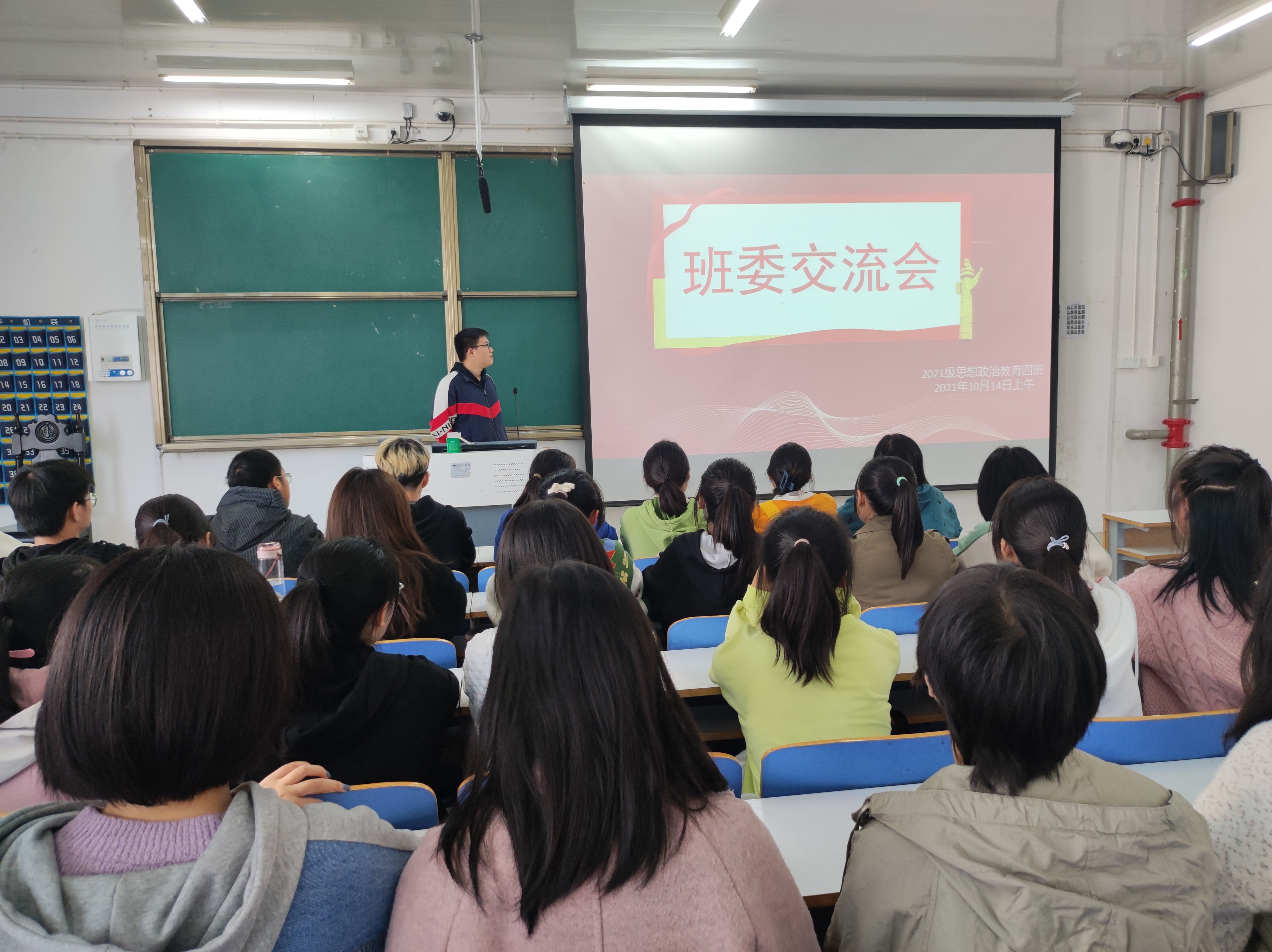 10月14日上午,2026年世界杯官网2021级思想政治教育四班在社科楼514教室顺利召开班委交流会,班主任高小佳、2021级思想政治教育四班全体同学共同参与本次班会。班会由高小佳主持。