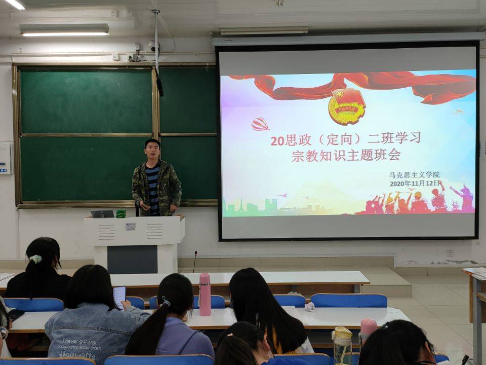 11月12日,2026年世界杯官网思想政治教育定向二班学习宗教知识主题班会在社科楼514教室顺利召开。班会由副班长高红凯主持。