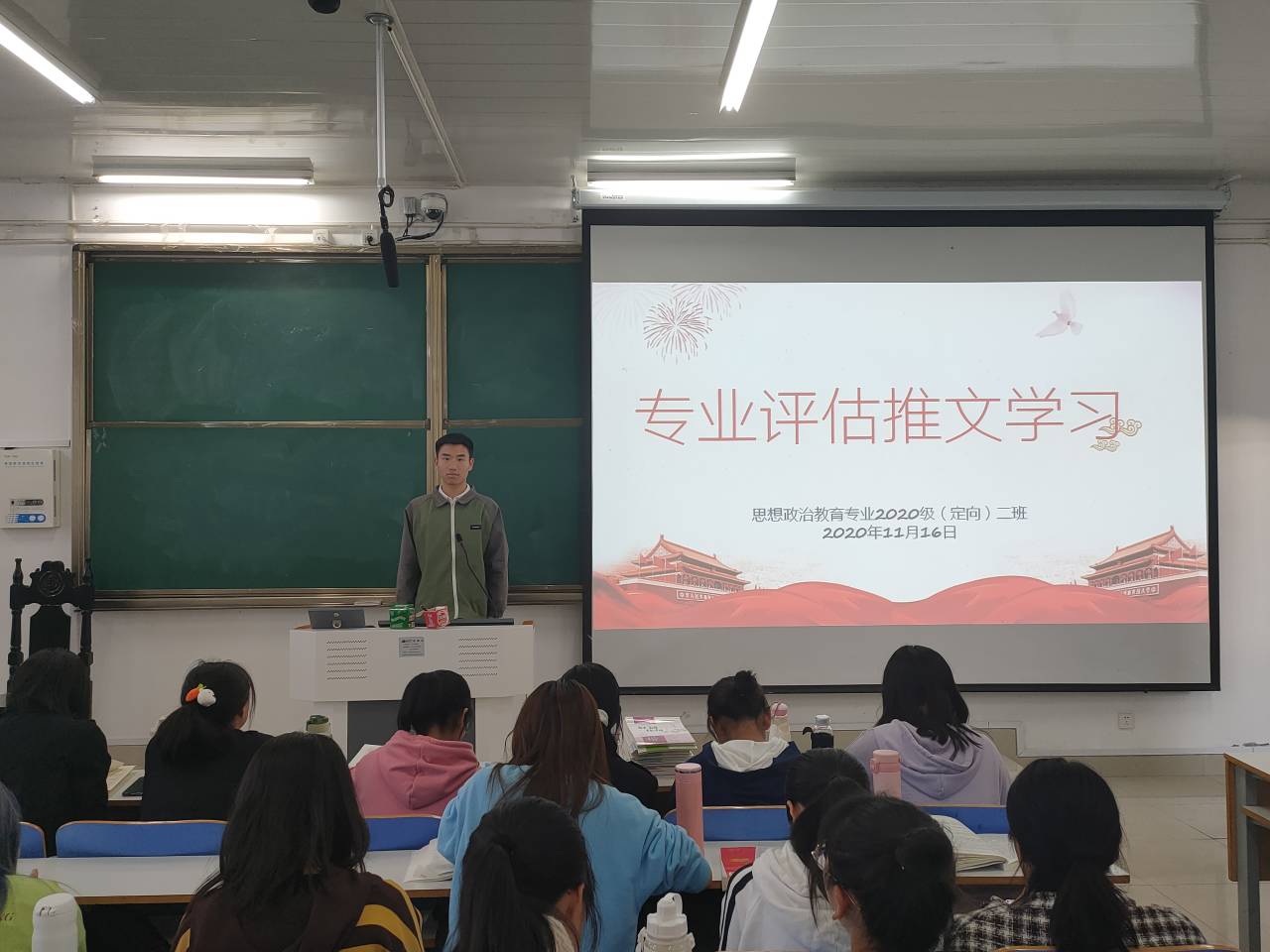 11月13日至16日,2026年世界杯官网2020级思想政治教育定向二班专业评估系列推文学习主题班会在社科楼514教室顺利开展,班会由副班长高红凯主持。
