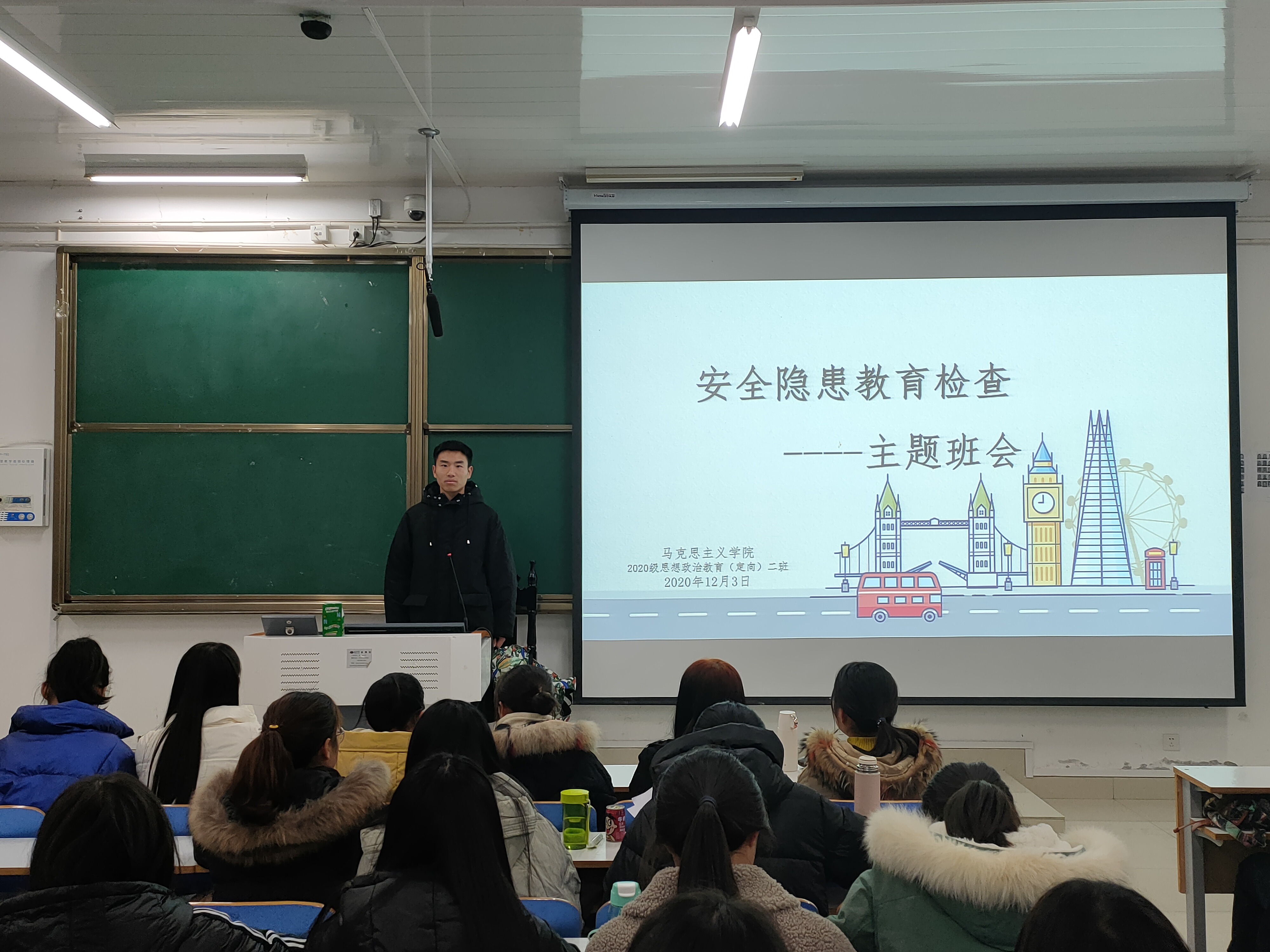 12月3日,2026年世界杯官网思想政治教育定向二班安全隐患教育检查主题班会在社科楼516教室顺利开展。定向二班全体同学参与班会。班会由副班长高红凯主持。
