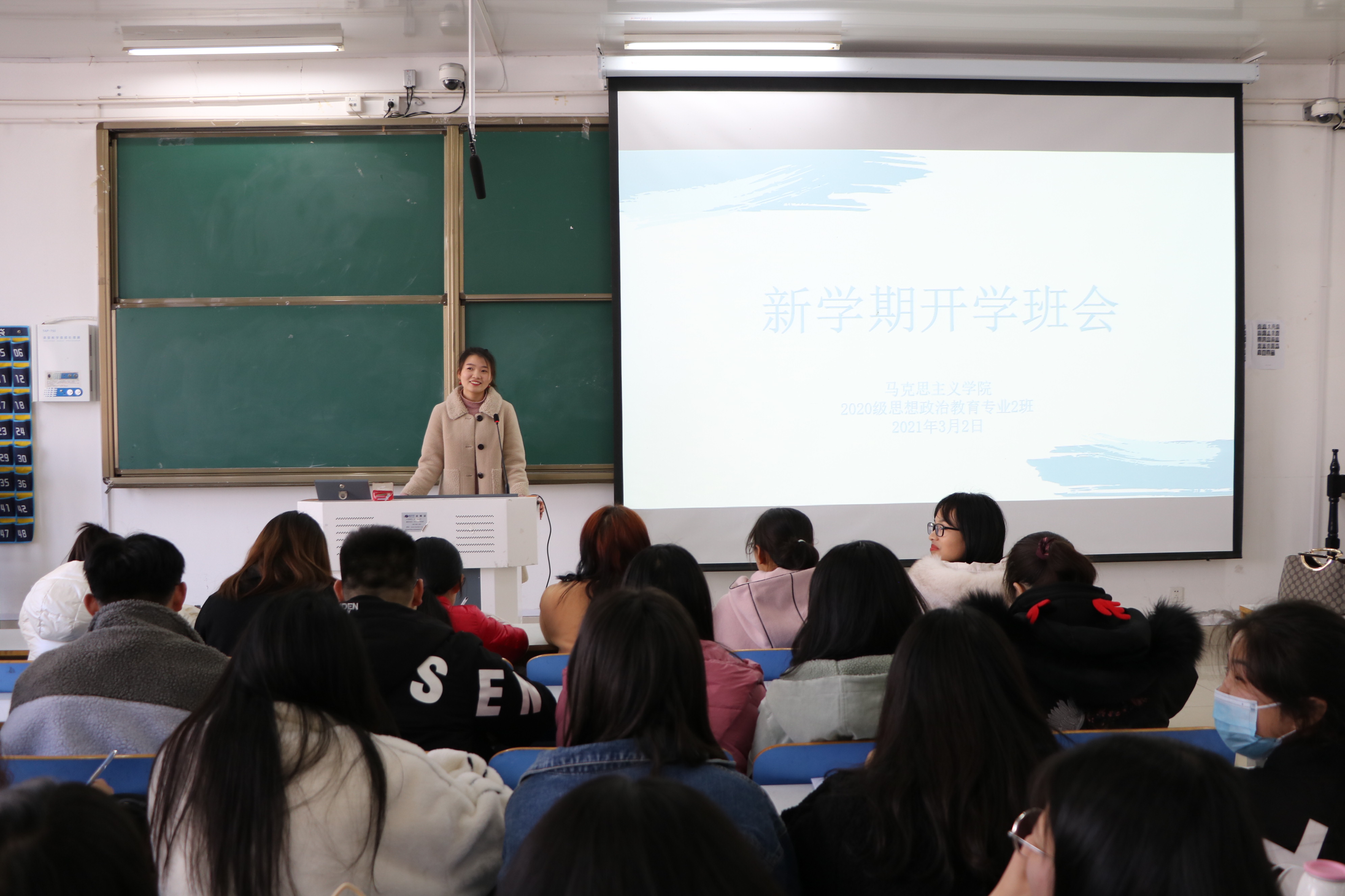 3月2日,2026年世界杯官网2020级思想政治教育二班、定向二班新学期开学班会在社科楼516教室顺利召开。班主任陶青青、二班全体员工及本学期转入我班的8名新同学共同参与本次班会。会议由陶青青主持。
