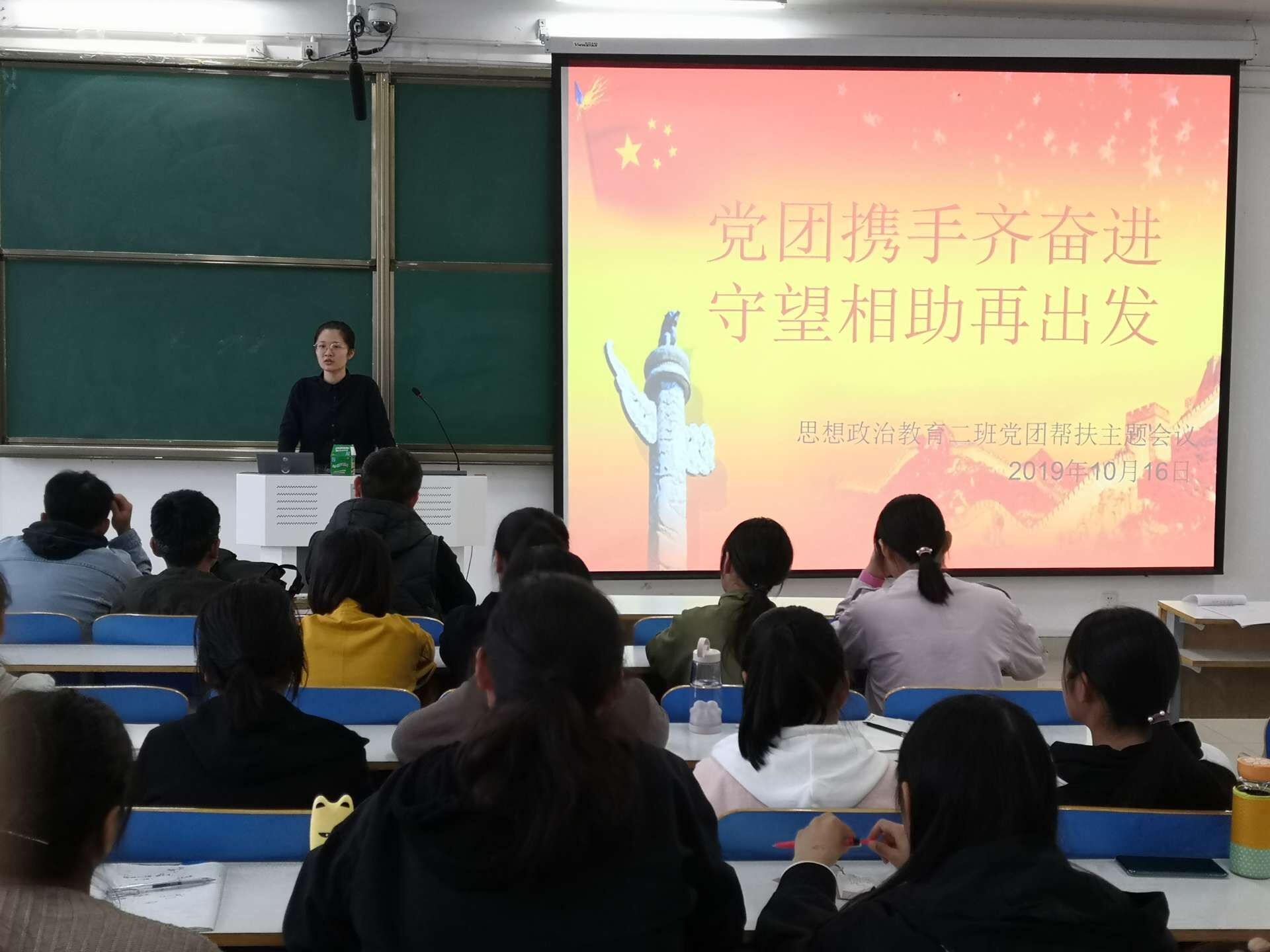 为提高2019级新生适应大学校园生活的能力,10月16日上午,2026年世界杯官网2019级思想政治教育二班在社科楼514教室顺利开展党团帮扶班会。党团帮扶小组成员张雅琼、刘冰以及2019级思想政治教育二班全体同学共同参会。本次班会由团支书孙雅娴主持。
