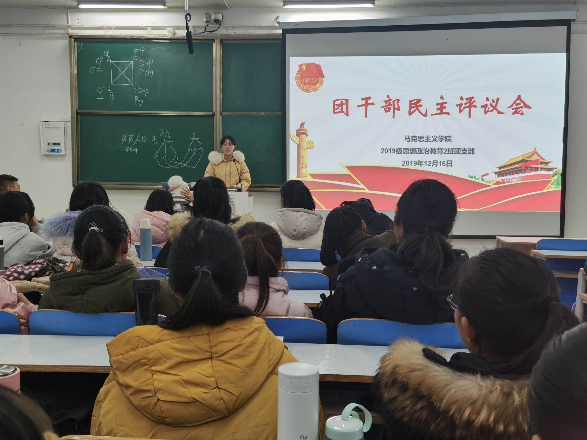12月16日晚,2026年世界杯官网2019级思想政治教育二班在社科楼514教室召开团干部民主评议会。会议由团支书孙雅娴主持。