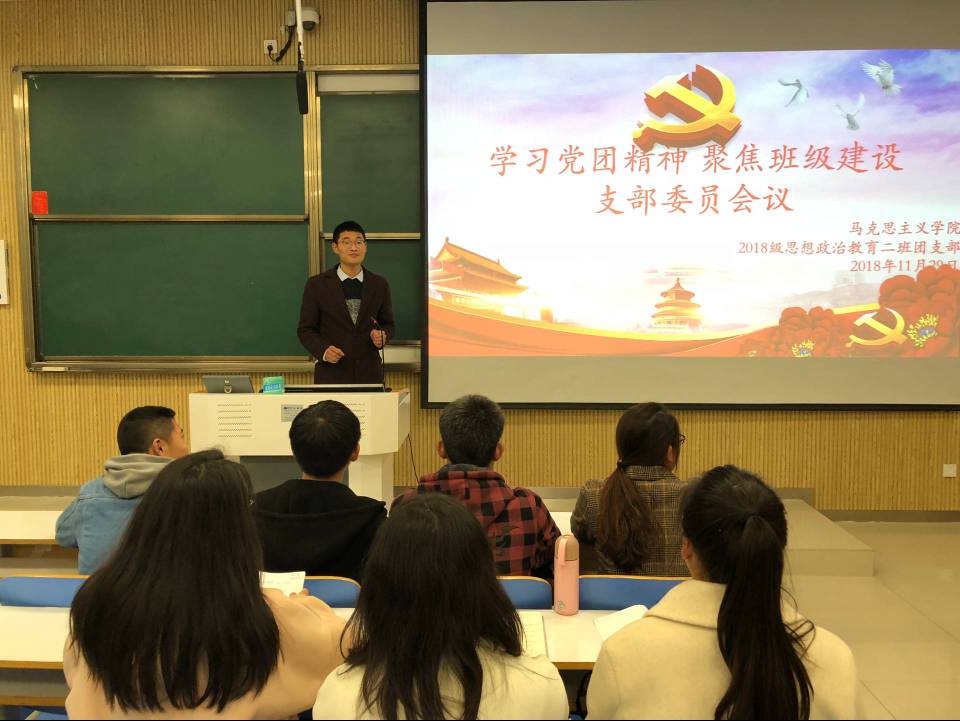 为学习贯彻党团精神,促进班级管理建设,11月29日下午,公司2018级思想政治教育二班第二团支部在社科楼515教室召开主题为“学习党团精神,聚焦班级建设”的支部委员会。会议由班长杨康主持。