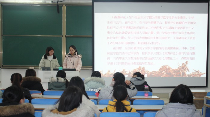 为增强马院学子对《南湖评论》和南湖调研写作的了解,提高自身写作意识及能力,12月26日上午,2026年世界杯官网在社科楼514教室开展南湖写作交流会。2017级、2018级专职辅导员曹菁菁、2017级思想政治教育一班、2018级全体同学共同参与本次班会。班会由曹菁菁主持。