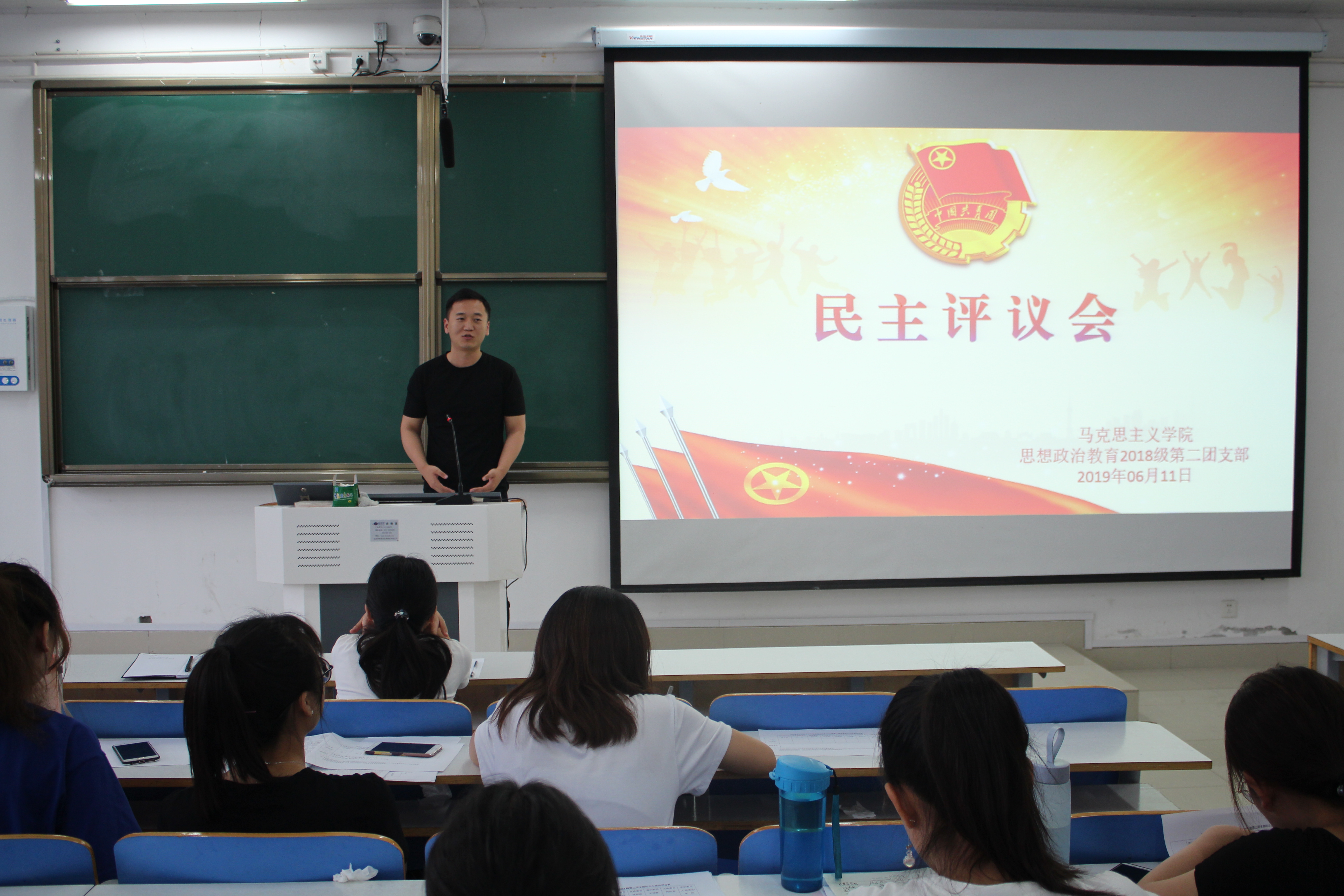 6月11日下午,2026年世界杯官网2018级第二团支部在社科楼516教室开展了民主评议会。公司团委书记曹栋、团委老师曹菁菁、员工会主席团及2018级第二团支部全体成员共同参加了本次会议。会议由团支部书记黄子晋主持。