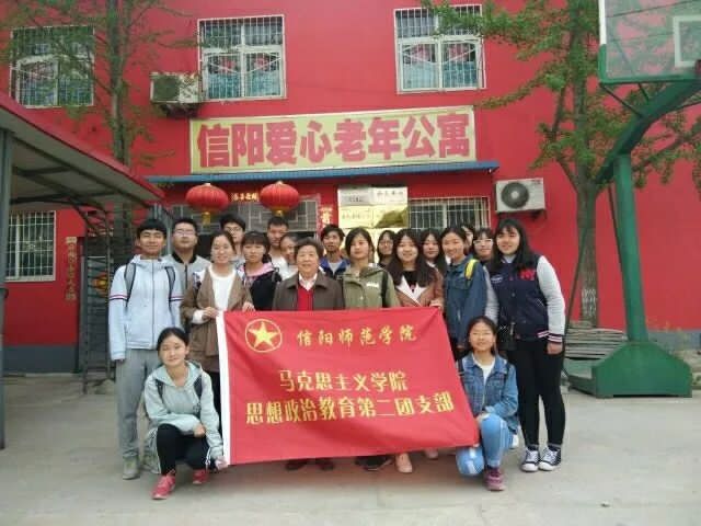 为了倡导老员工更好地弘扬雷锋精神,践行社会主义核心价值观。2017年4月4日,信阳师范学院17级思想政治教育二班部分员工在环境保护协会会长的带领与指导下,到信阳爱心老人公寓去探望孤寡老人。