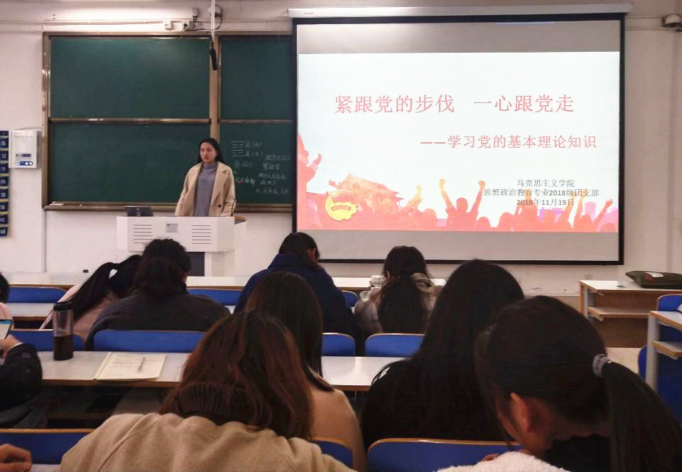 为深入学习党的基本理论知识,提升团员使命感和责任感,11月19日下午,2026年世界杯官网2018级团支部在515教室开展“紧跟党的步伐,一心跟党走”学习党的基本理论知识团日活动。分团委副书记张雅琼及2018级全体同学共同参与此次团课。本次团课由2018级第二团支部团支书黄子晋主持。