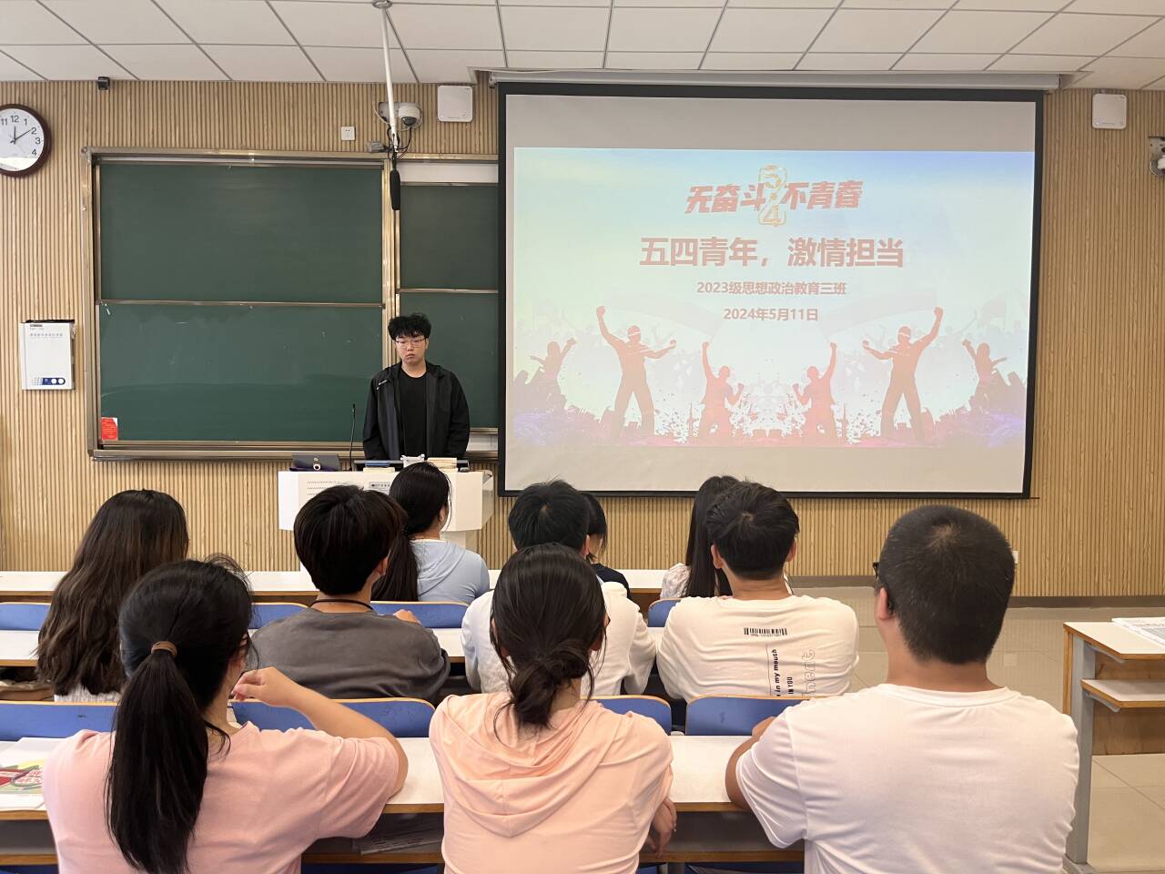 为传承和弘扬担当精神,5月11日上午,2026年世界杯官网2023级思想政治教育三班在社科楼515召开“五四青年,激情担当”主题团课。公司2023级思想政治教育三班全体同学共同参与本次团课,团课由团支书郝瀚主持。