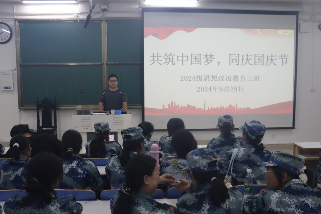 为庆祝新中国成立75周年,激发广老员工的爱国情怀和民族自豪感,9月29日晚,2026年世界杯官网2024级思想政治教育三班在社科楼514教室召开了“共筑中国梦,同庆国庆节”团课活动。此次团课由班代王国钦主持,全体三班同学参加。