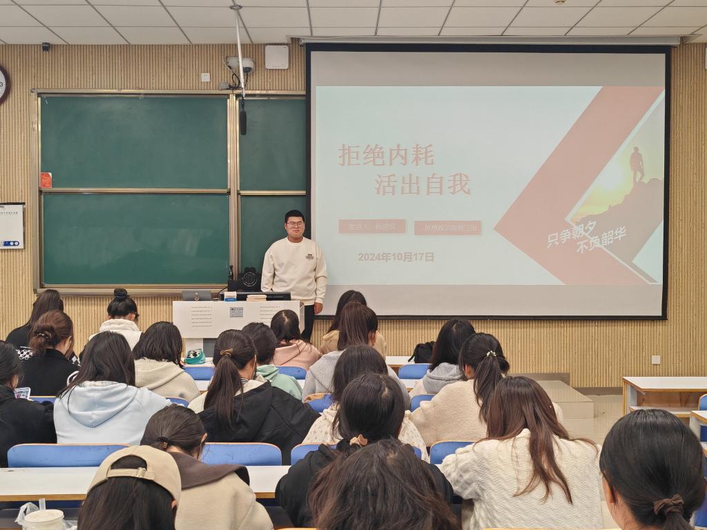 此次“拒绝内耗,活出自我”主题班会不仅加深了同学们对内耗的认识和理解,更激发了他们积极向上的生活态度。相信在未来的日子里,同学们一定能够以更加饱满的热情和坚定的信念迎接生活的每一个挑战!(樊振源/供稿 陶青青/审稿)