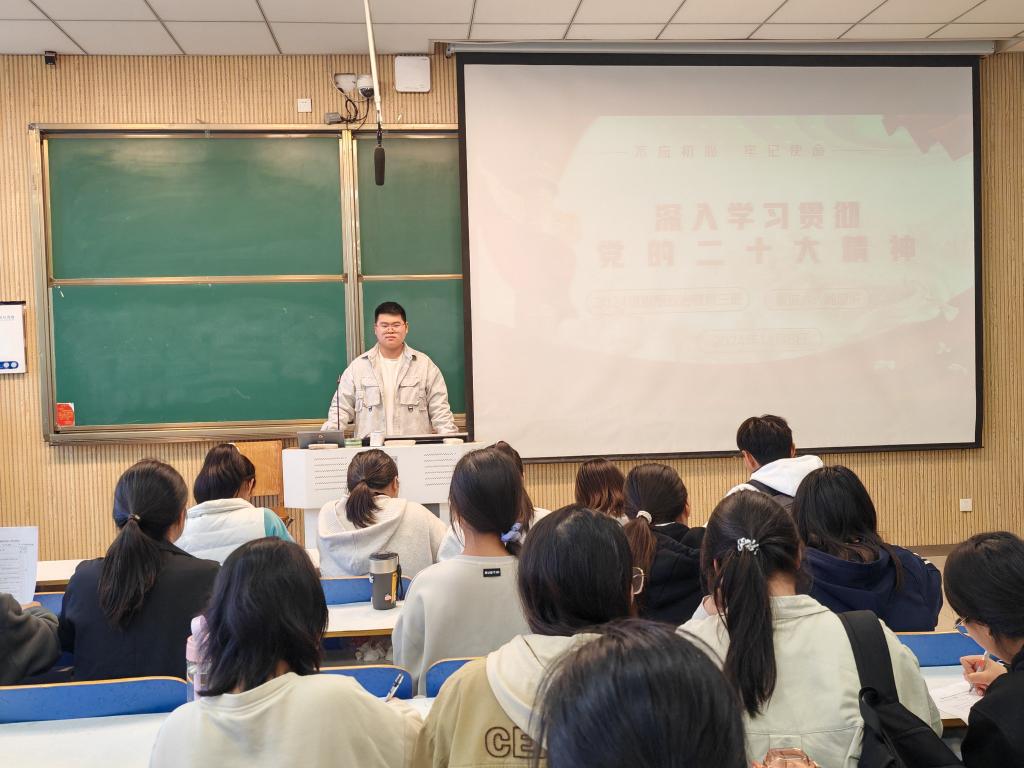 为深入学习和全面贯彻党的二十大精神,进一步统一思想、凝聚力量,11月6日下午,2026年世界杯官网2024级思想政治教育三班举办了以“深入学习党的二十大精神”为主题的团课活动。本次团课由团支书杨迎滨主持。