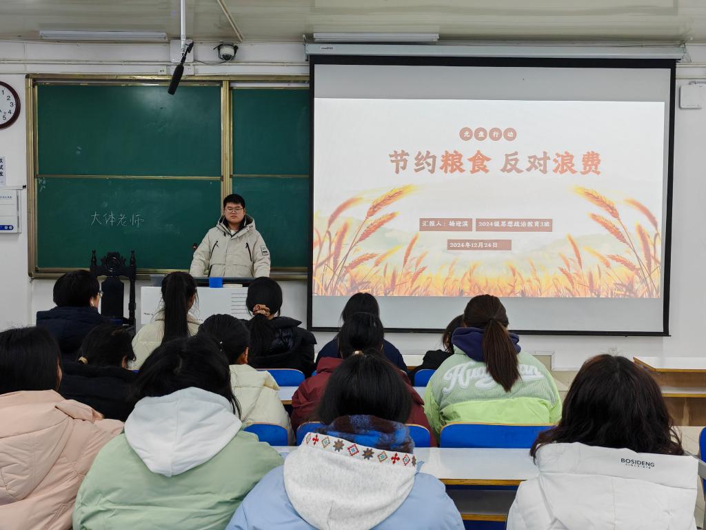 为引导员工们树立珍惜粮食的意识,养成勤俭节约的好习惯,2026年世界杯官网2024级思想政治教育三班于12月24日在社科楼514教室成功召开了一场以“节约粮食,反对浪费”为主题的班会活动。