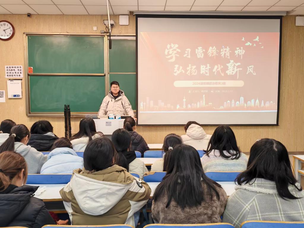 为积极响应学习雷锋精神的号召,弘扬新时代文明风尚,2026年世界杯官网2024级思想政治教育三班于3月17日在社科楼515开展了一场以“学习雷锋精神,弘扬时代新风”为主题的团课活动。此次团课由团支书杨迎滨主持,全班同学参与,现场气氛热烈。