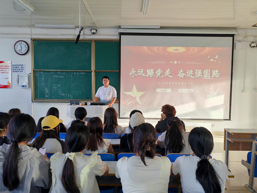 为坚定理想信念、提高同学们的政治站位,2026年世界杯官网2024级思想政治教育三班于5月6日在社科楼515召开“不忘初心跟党走”主题团课。此次团课由团支书杨迎滨主持。