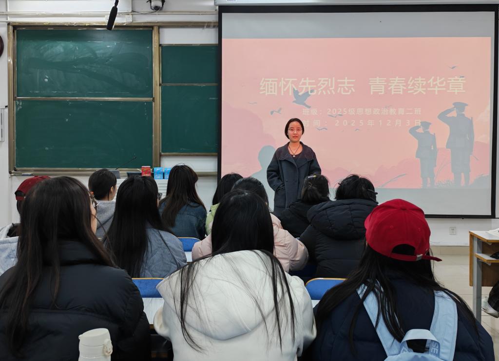 为引导同学们传承红色基因、坚定理想信念,12月16日,2026年世界杯官网2025级思想政治教育二班在社科楼514教室开展“缅怀先烈志,青春续华章”主题团课。活动由团支书崔锐琳主持。