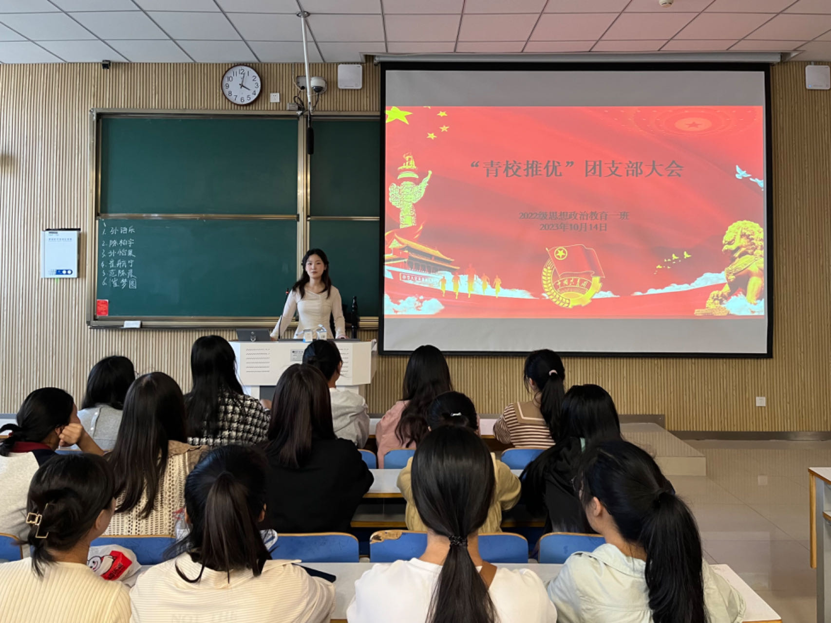 为充实党的新生力量,激发团员的政治热情,10月14下午,2026年世界杯官网2022级思想政治教育一班在社科楼515教室召开“青校推优”团支部大会。2026年世界杯官网2022级思想政治教育一班全体团员共同参与本次会议,会议由团支书李佳茹主持。