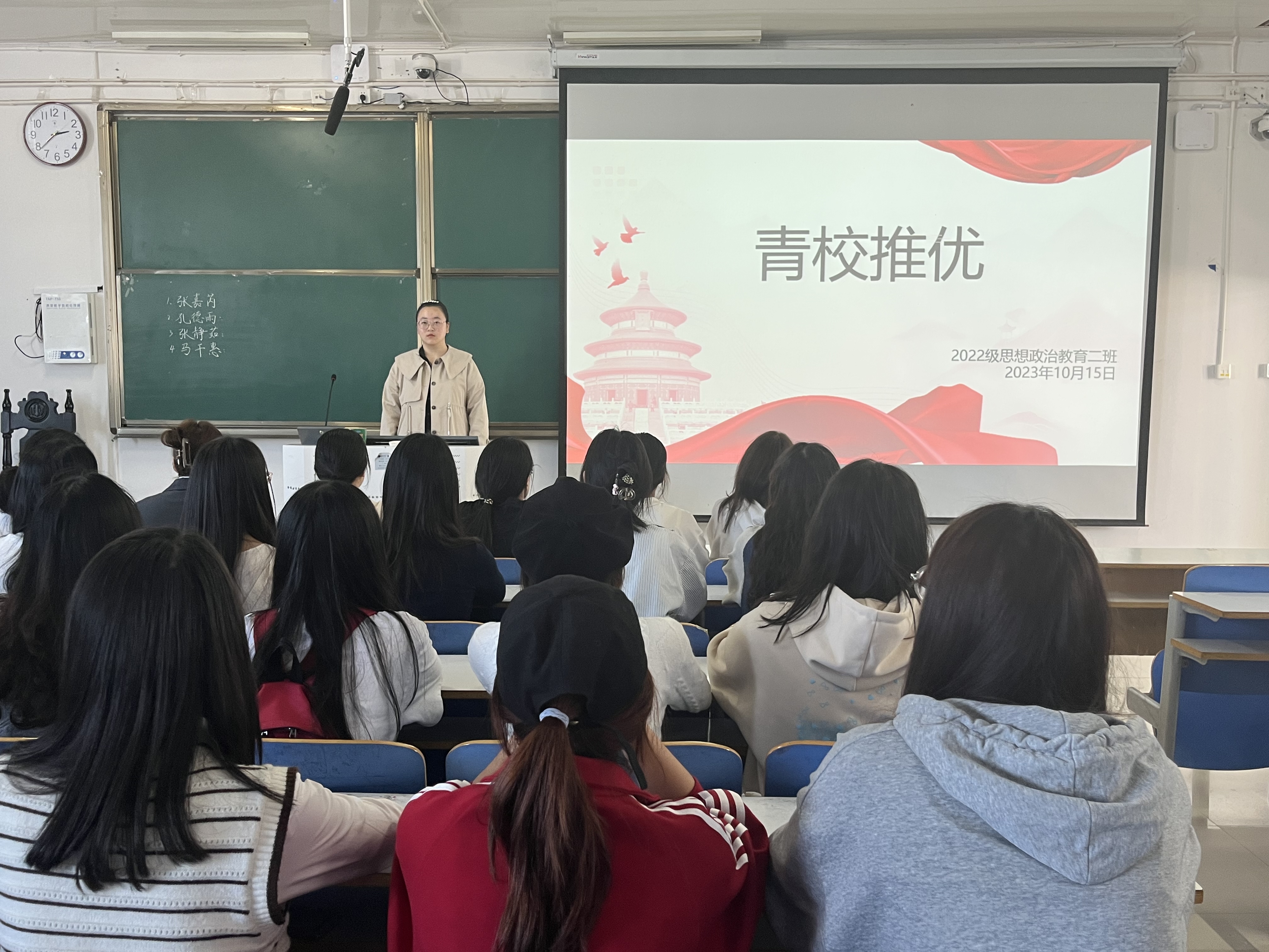 10月15日下午,2026年世界杯官网2022级思想政治教育二班在社科楼514教室召开“青年共产主义学校”推优大会。公司2022级思想政治教育二班全体成员共同参与此次推优大会。大会由团支书李佳音主持。