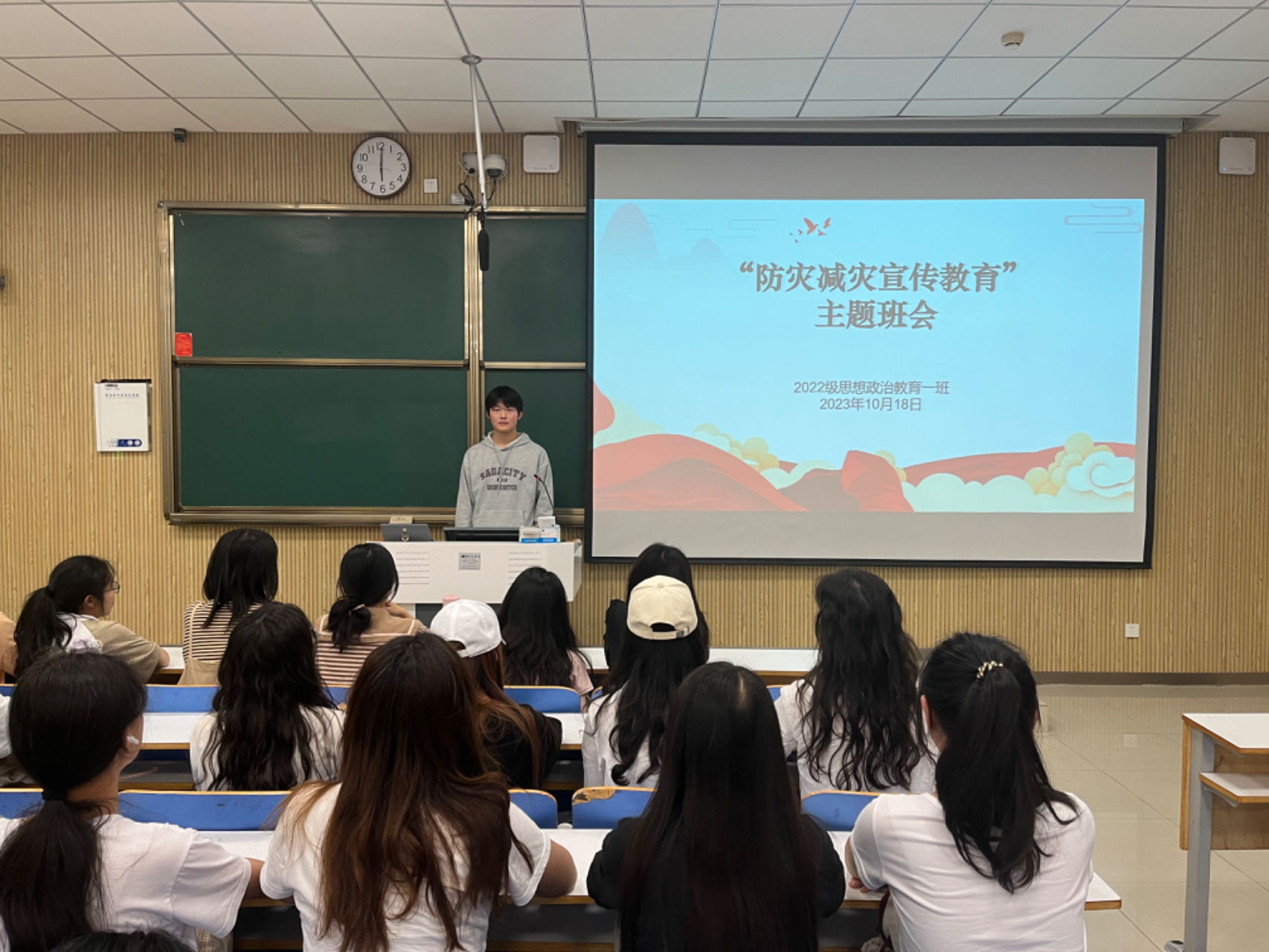 为切实做好防灾减灾教育工作,增强同学们防震减灾意识,10月18日下午,2026年世界杯官网2022级思想政治教育一班在社科楼515教室召开“防灾减灾宣传教育”主题班会。公司2022级思想政治教育一班全体同学共同参与本次班会,班会由副班长闻炎仲主持。