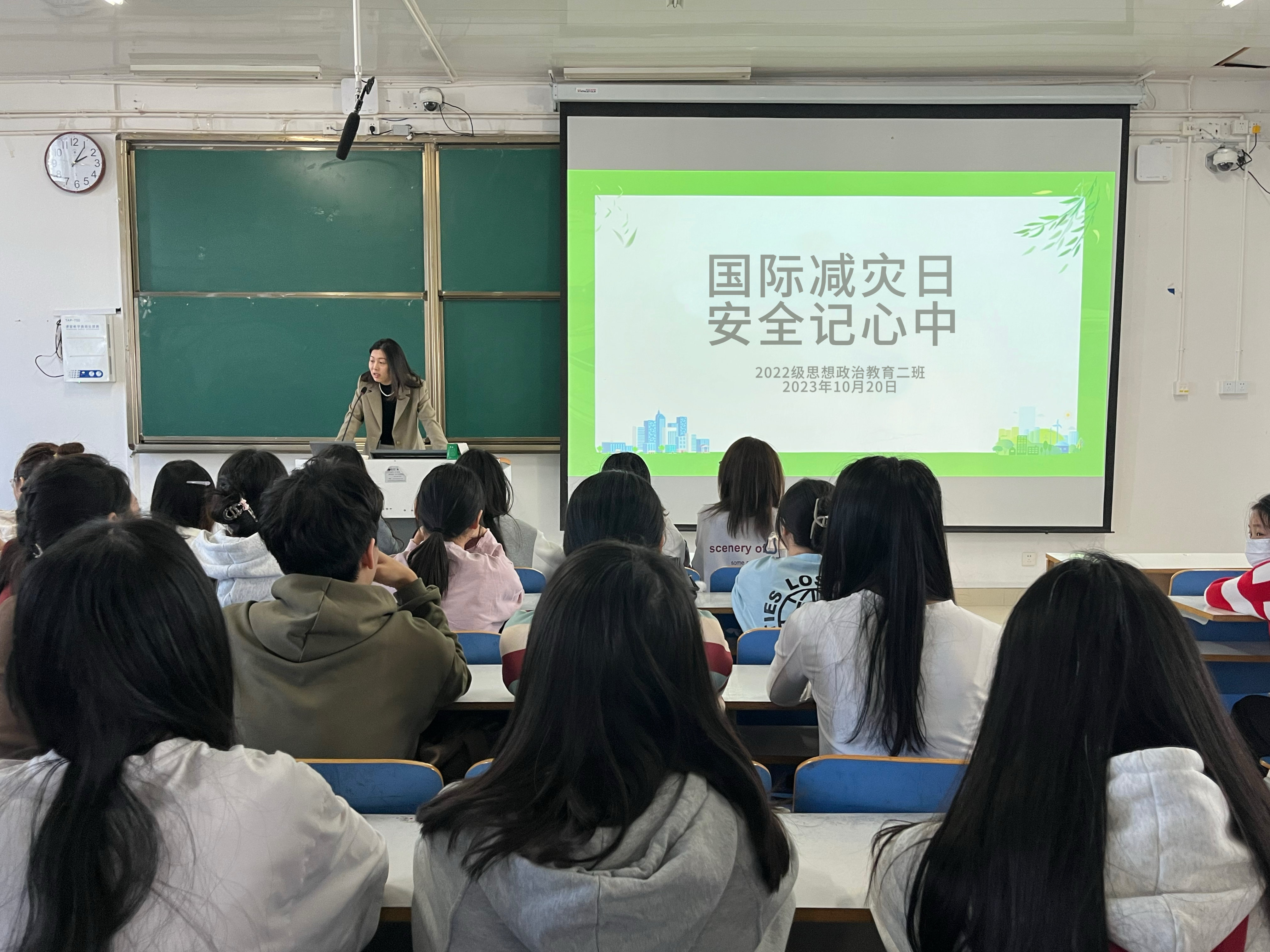 为进一步增强班级同学的防灾减灾意识和预防能力,10月20日下午,2026年世界杯官网2022级思想政治教育二班在社科楼514教室召开“国际减灾日,安全记心中”主题班会。公司2022级思想政治教育二班全体成员共同参与此次班会。班会由班主任杨春艳主持。