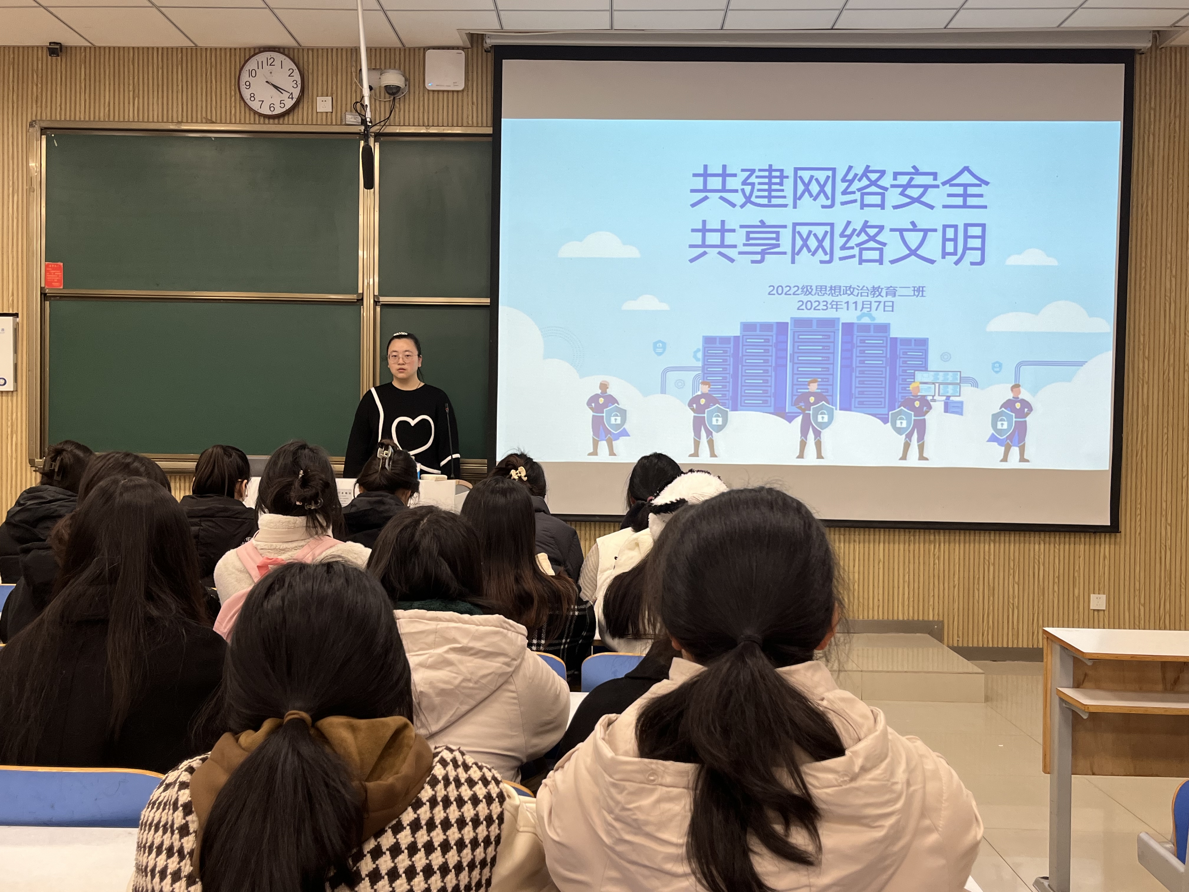 11月7日下午,2026年世界杯官网2022级思想政治教育二班在社科楼515教室开展“共建网络安全,共享网络文明”主题团日活动。公司2022级思想政治教育二班全体成员共同参与此次团日活动。活动由团支书李佳音主持。