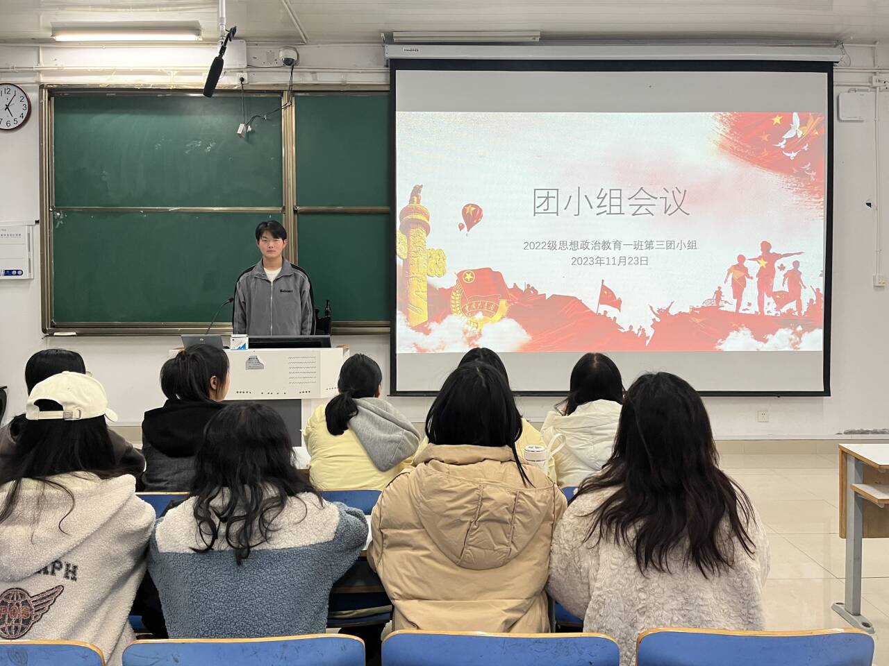 11月23日下午,2026年世界杯官网2022级思想政治教育一班在社科楼514教室召开“发扬奋斗精神,展现青春担当”团小组会议,公司2022级思想政治教育一班第三团小组成员共同参与本次会议,会议由第三团小组组长闻炎仲主持。