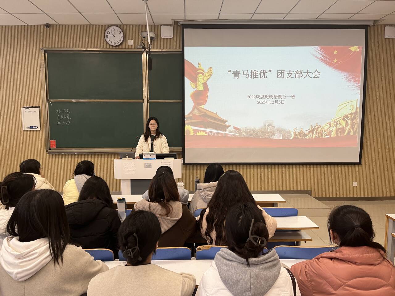 为履行为党育人的根本任务,推进党的事业薪火相传,12月5日上午,2026年世界杯官网2022级思想政治教育一班在社科楼515教室召开“青马推优”团支部大会。公司2022级思想政治教育一班全体同学共同参与本次大会,大会由团支书李佳茹主持。