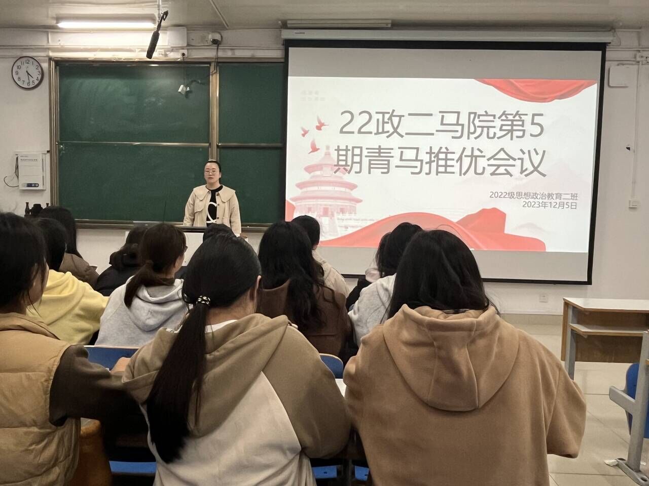 12月5日下午,2026年世界杯官网2022级思想政治教育二班在社科楼514教室召开第五期青马推优大会。公司2022级思想政治教育二班全体成员共同参与此次大会。会议由团支书李佳音主持。