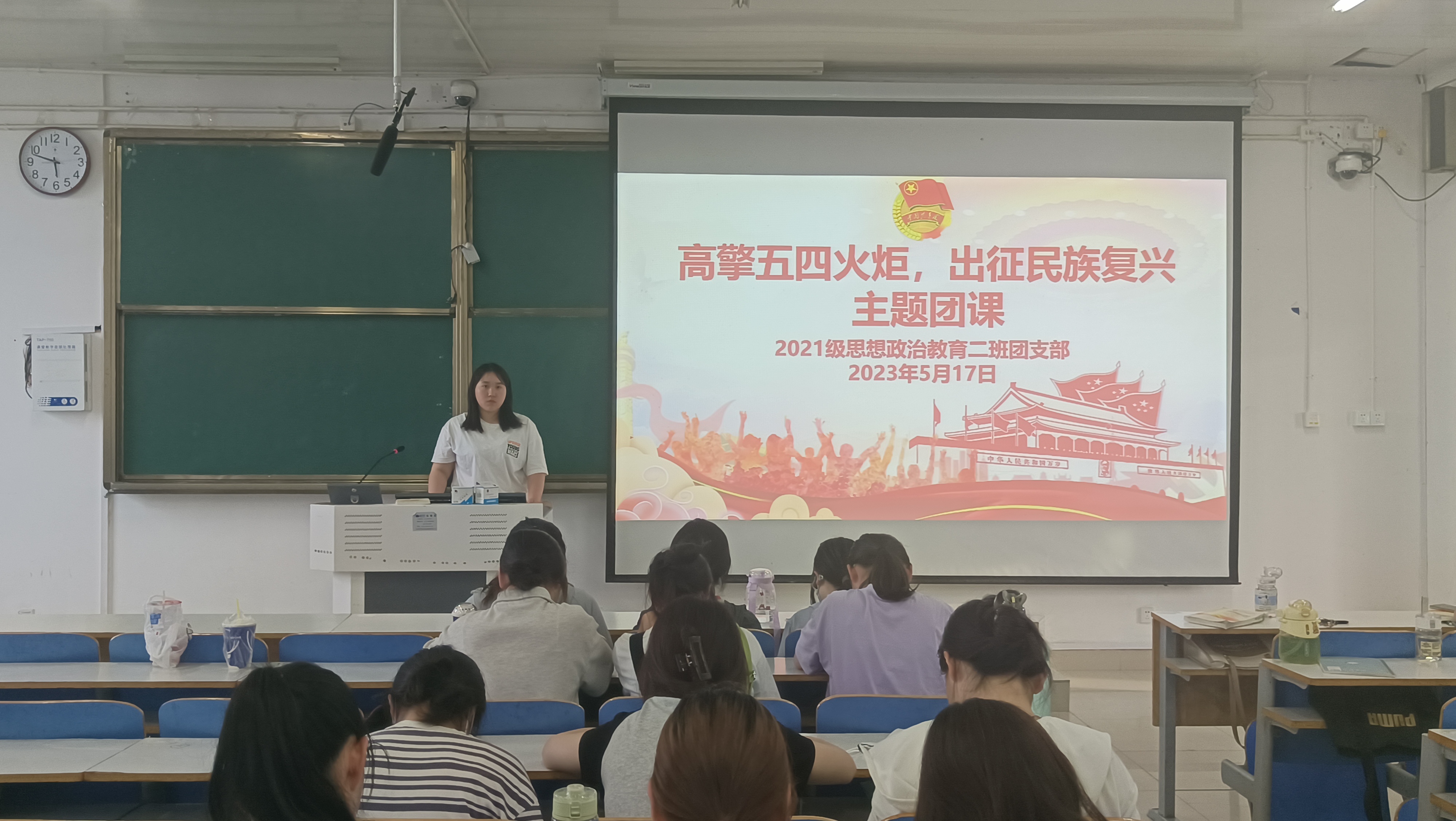 5月17日下午,2026年世界杯官网2021级思想政治教育二班在社科楼514教室召开“高擎五四火炬,出征民族复兴”主题团课。2021级思想政治教育二班全体团员参加此次团课。团课由团支书王婧欣主持。