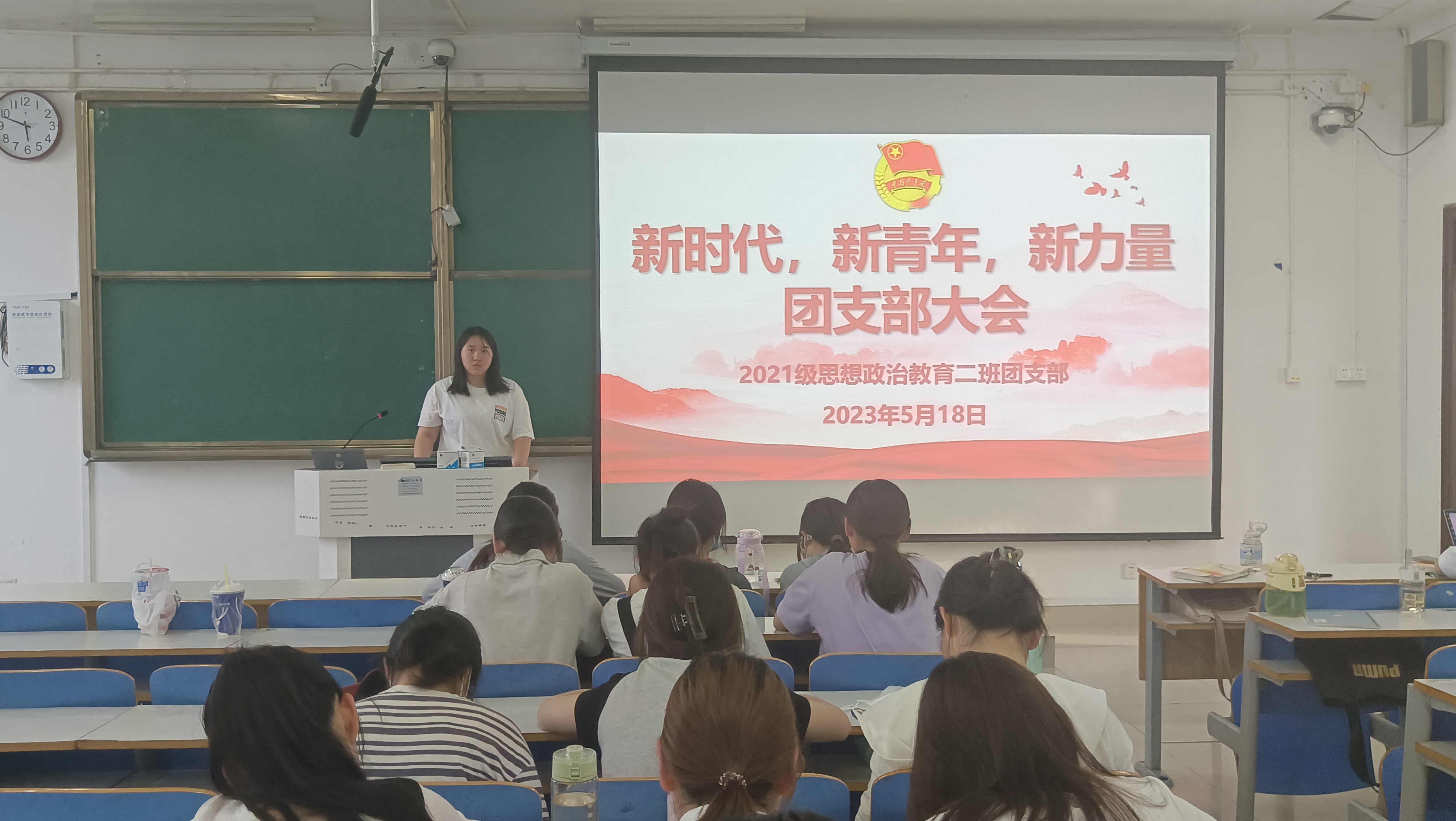 5月18日下午,2026年世界杯官网2021级思想政治教育二班在社科楼514教室召开“新时代,新青年,新力量”团支部大会。2021级思想政治教育二班全体团员参加此次团支部大会。会议由团支书王婧欣主持。
