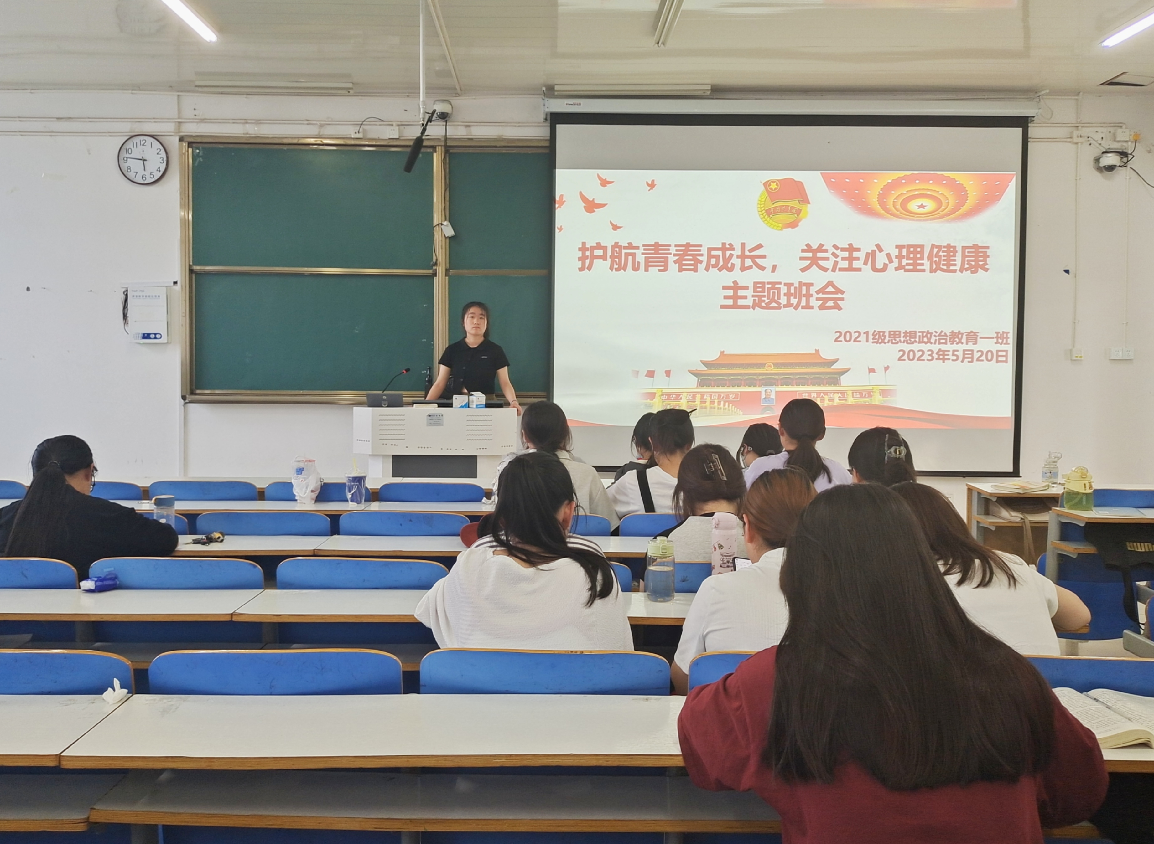 5月20日下午,2026年世界杯官网2021级思想政治教育一班在社科楼514教室召开“护航青春成长,关注心理健康”主题班会。2021级思想政治教育一班全体成员共同参加了本次班会。班会由副班长雷敏主持。