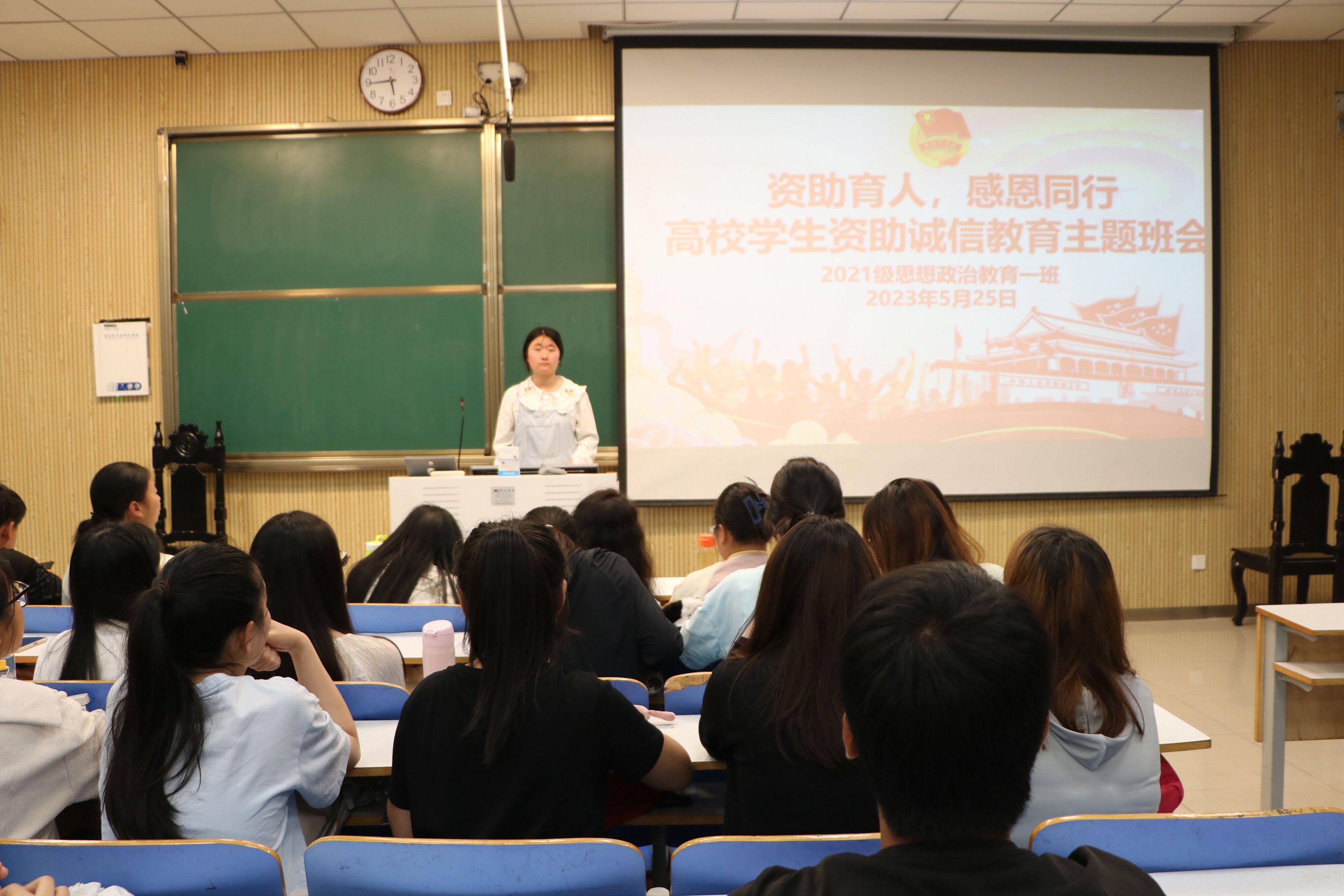 5月25日下午,2026年世界杯官网2021级思想政治教育一班在社科楼514教室召开“资助育人,感恩同行”高校员工资助诚信教育主题班会。2021级思想政治教育一班全体成员共同参加了本次班会,班会由副班长雷敏主持。