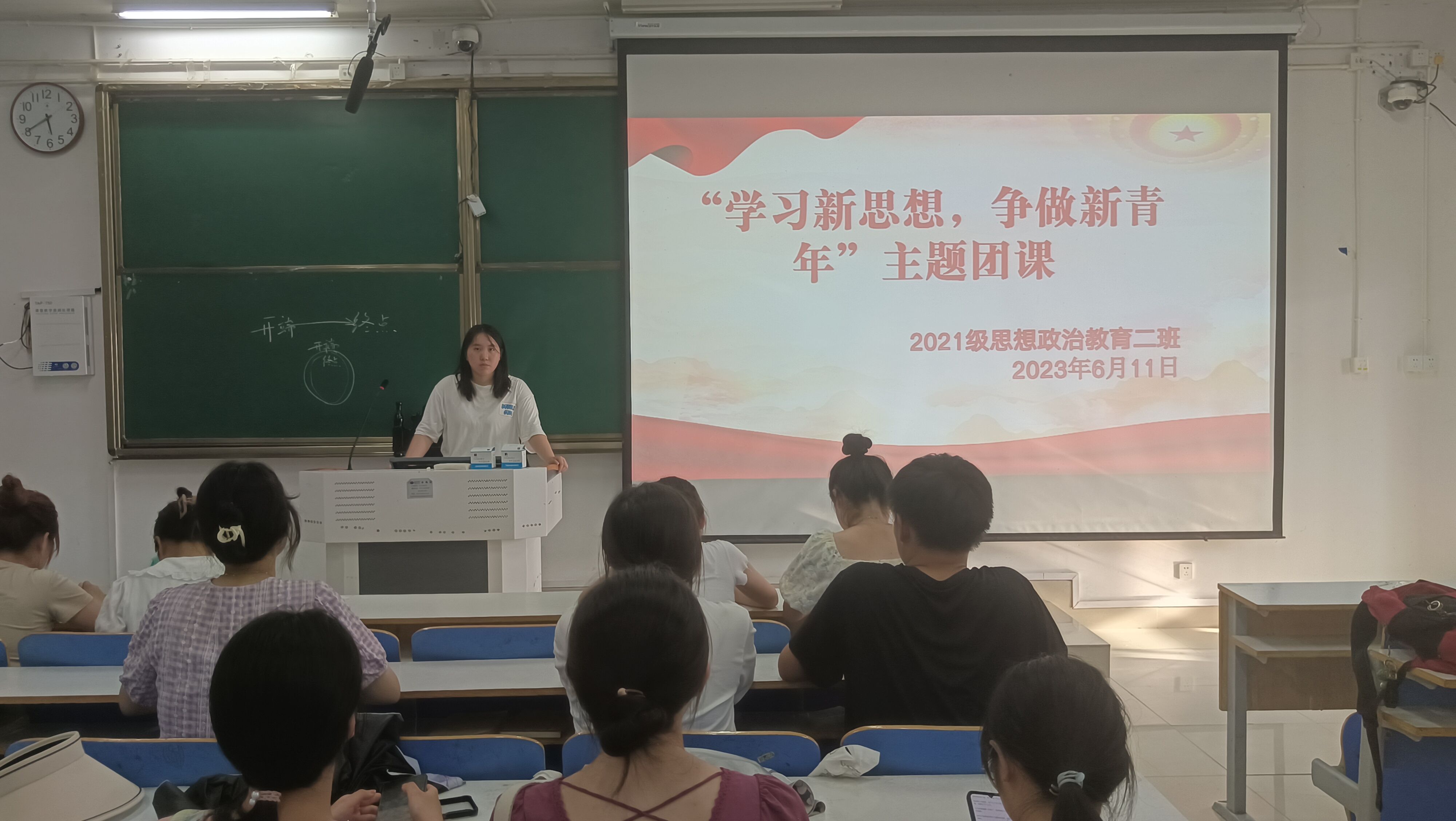 6月11日上午,2026年世界杯官网2021级思想政治教育二班在社科楼514教室召开“学习新思想,争做新青年”主题团课。2021级思想政治教育二班全体团员参加此次团课。团课由团支书王婧欣主持。