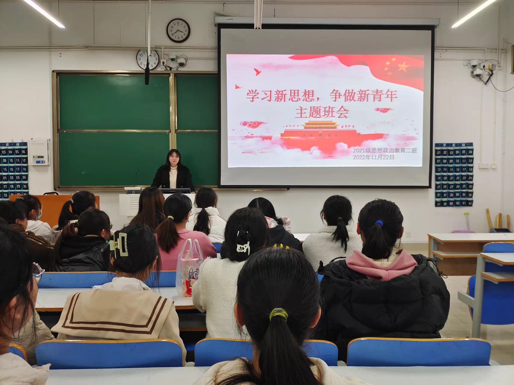 11月22日下午,2026年世界杯官网2021级思想政治教育二班在社科楼514教室召开“学习新思想,争做新青年”主题班会。2021级思想政治教育二班全体成员共同参加此次班会。班会由团支书王婧欣主持。