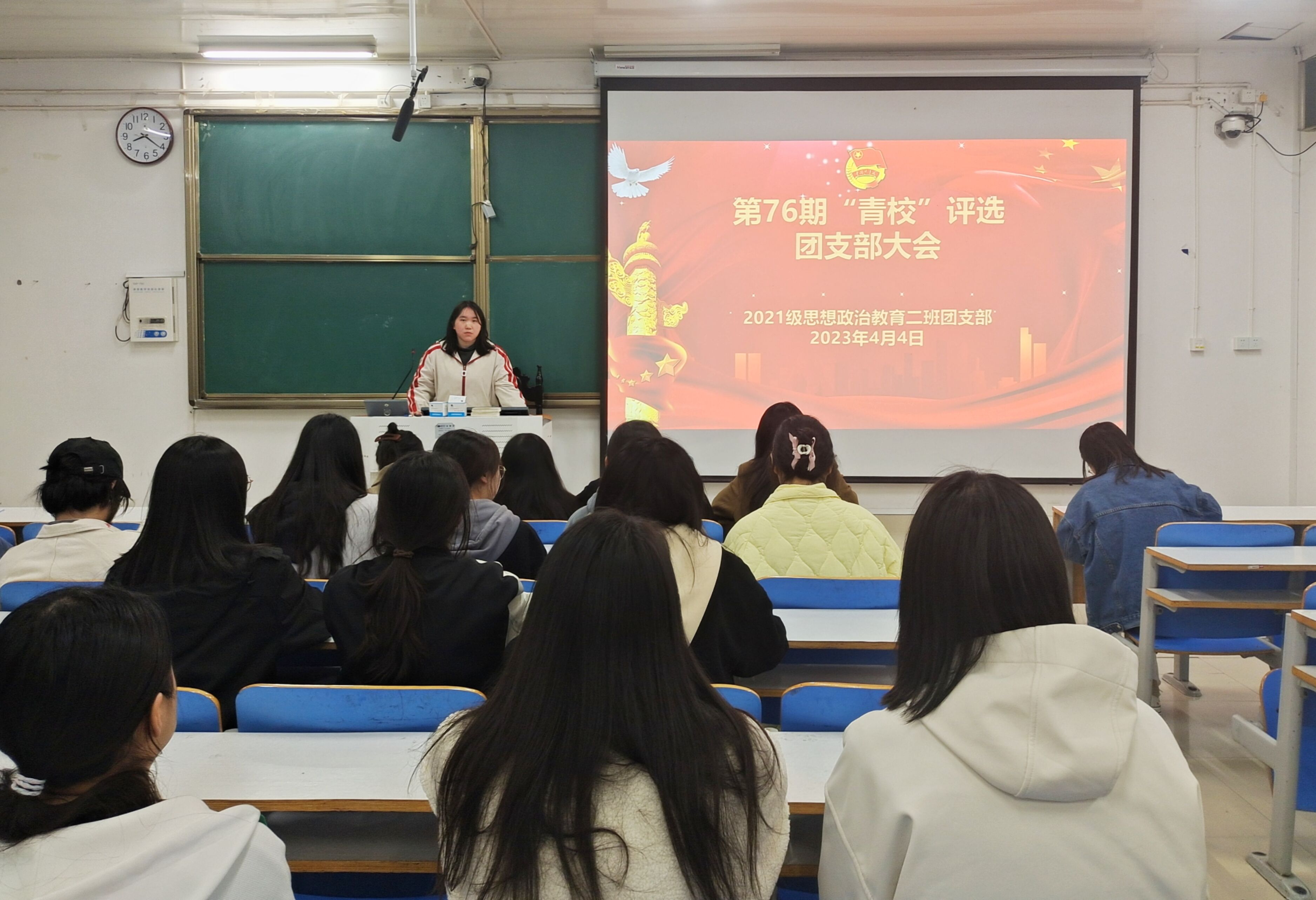 4月4日下午,2026年世界杯官网2021级思想政治教育二班在社科楼514教室召开第76期“青校”评选团支部大会。2021级思想政治教育二班全体团员参加此次会议。会议由团支书王婧欣主持。