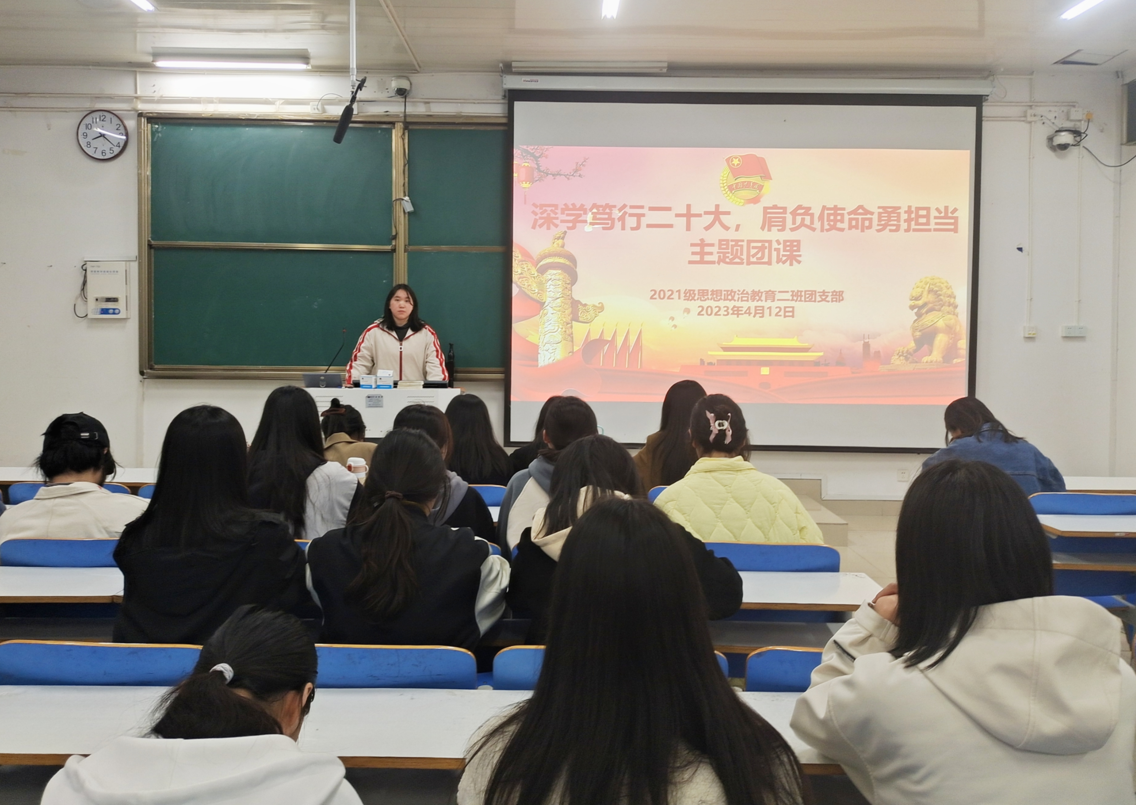 4月12日下午,2026年世界杯官网2021级思想政治教育二班在社科楼514教室召开“深学笃行二十大,肩负使命勇担当”主题团课。2021级思想政治教育二班全体团员参加此次团课。团课由团支书王婧欣主持。