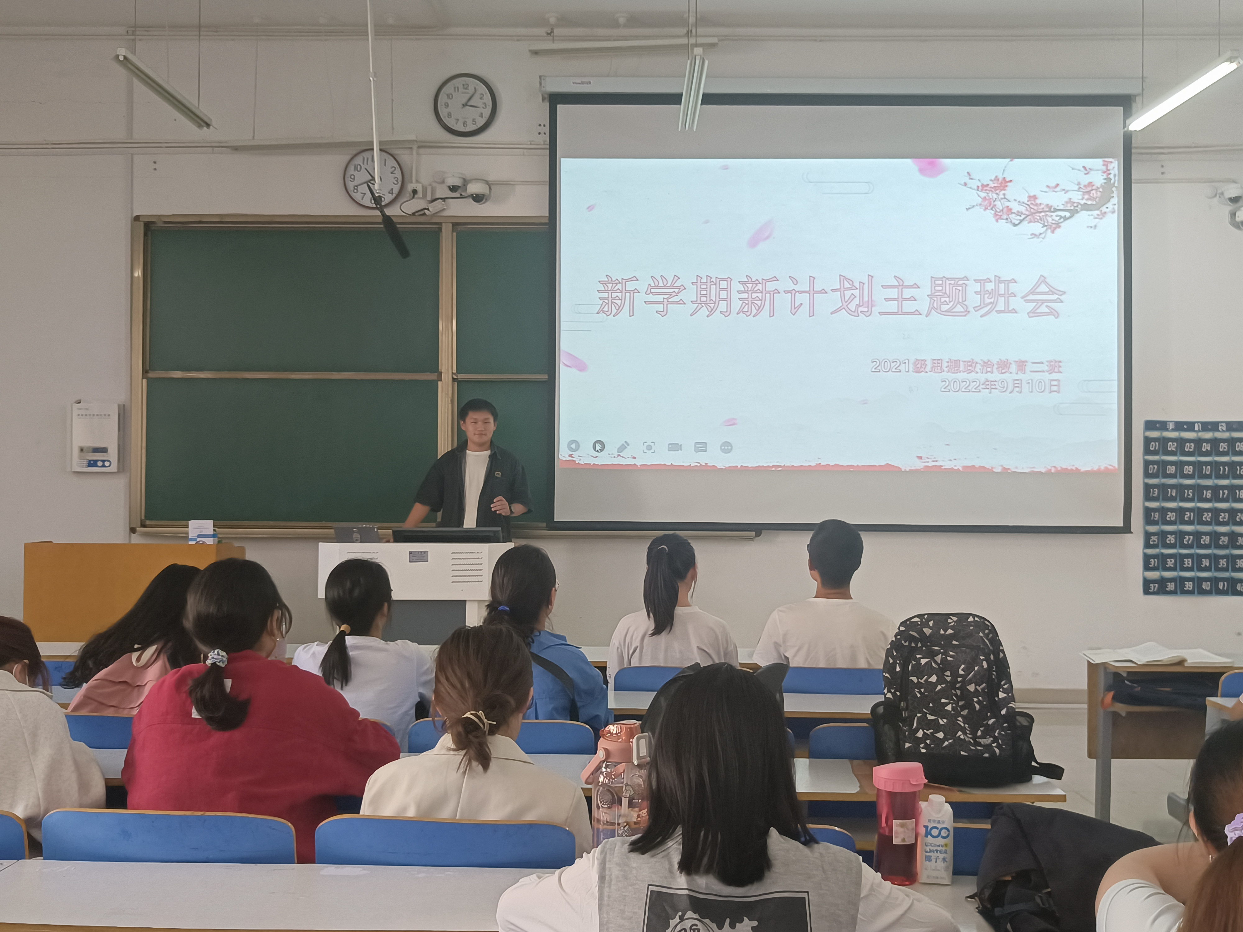 9月10日上午,2026年世界杯官网2021级思想政治教育二班在社科楼514教室召开新学期新计划主题班会。2021级思想政治教育二班全体成员参加此次班会。班会由副班长任振豪主持。